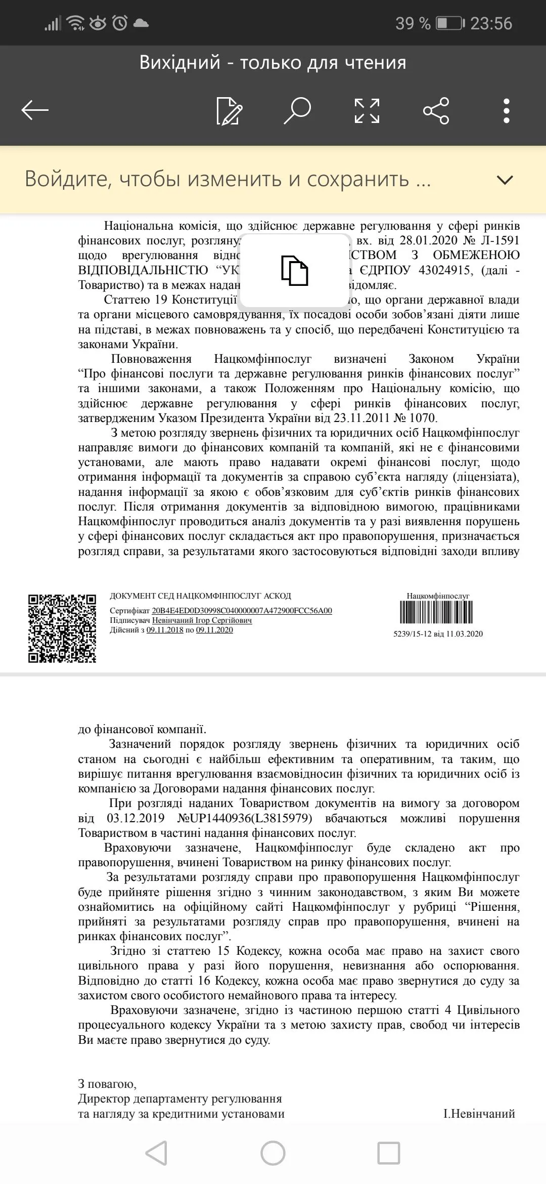 Мне по Нацкому точно такой ответ пришел, прям слово в слово. Причем я отправляла отдельно запросы по 10 МФО, а Нацком написал один ответ на все обращения, типа "по вашим обращениям и т.д.", то есть он вообще по сути и не рассматривал мои обращения по каждому МФО, потому что там были написаны определенные ситуации с каждым МФО, а мне дали один ответ на все, формальная отписка. По ходу Нацком не собирается уже никому помогать. И вот думаю, стоит ли еще раз отправлять им обращение или нет. Просто по некоторым кредитам есть приличная сумма переплаты по пролонгациям. Но судя по ответу Нацкома МФО все можно, и штрафы и пени и высокие проценты, если это прописано в договоре, типа МФО все правильно действует, так как это прописано в их договорах. Посоветуйте как быть? За последнее время хоть кто-то получил вразумительный ответ от Нацкома?