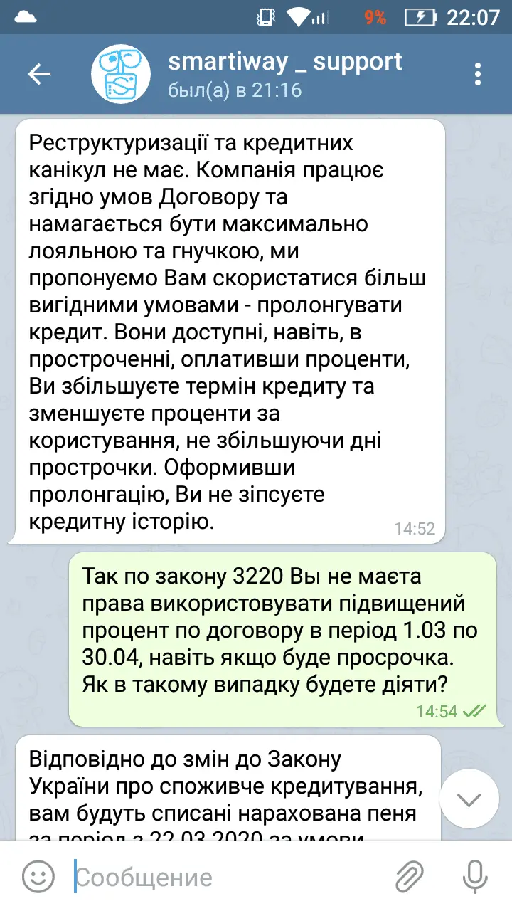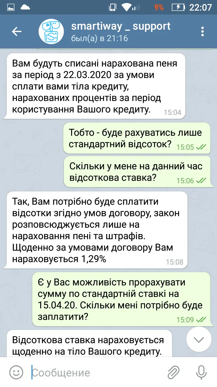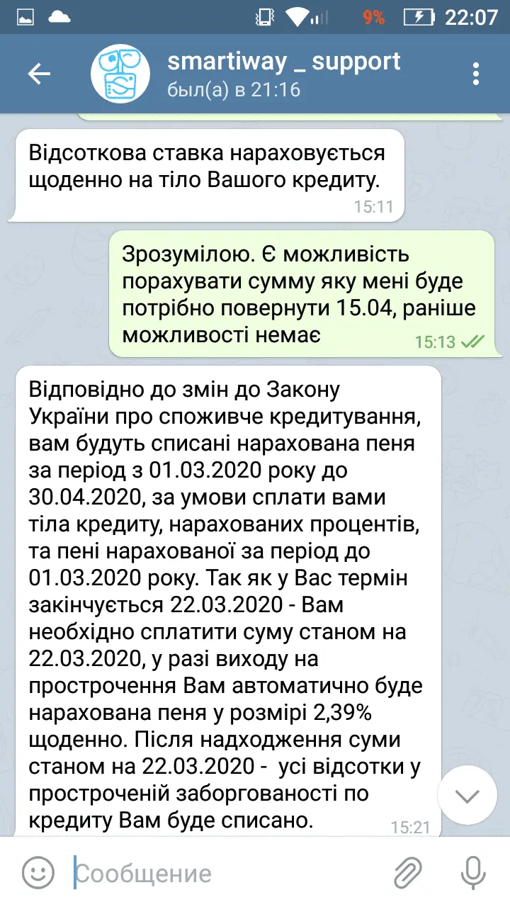 Мне сегодня клт-кредит прислало смс следующего характера: Добрий день! У звязку з складною ситуацією в Україні, компанія КЛТ Кредит зупинила нархування пені і штрафів. Шановний клієнт, якщо Ви внесете 4550.00 грн Ваш кредит будет закритий. Тел. 0800217373