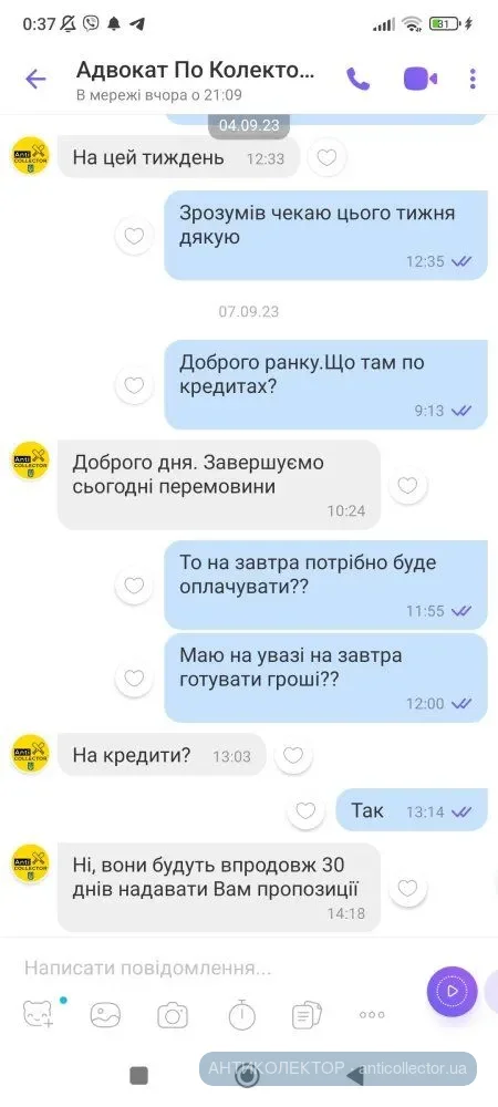 Ще є Ольга обіцяє до двох днів дзвінки припиняться відсотки знімемо за тиждень..всьо це брехня дзвінки як були так і будуть по відсотках повний нуль..шахраї