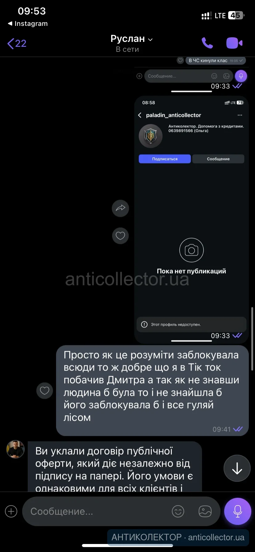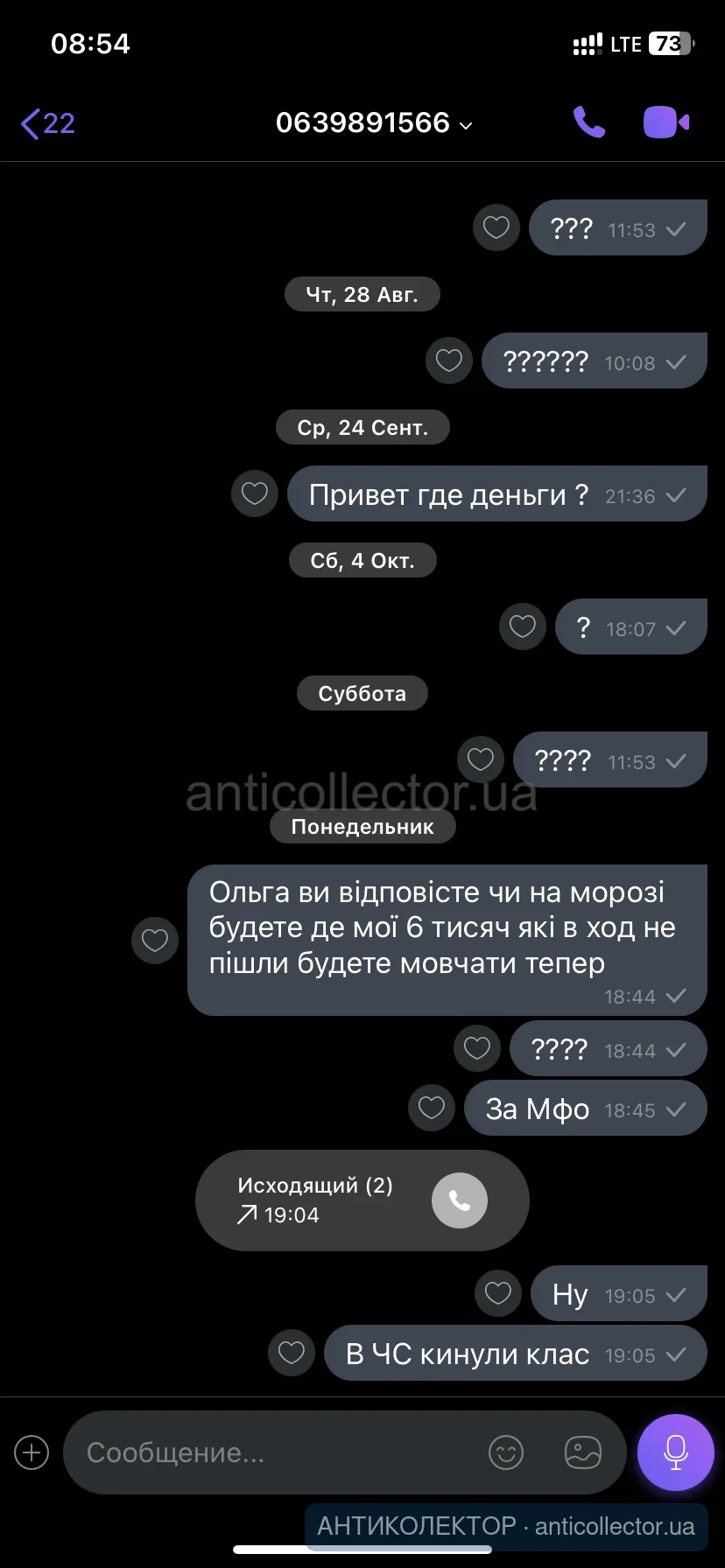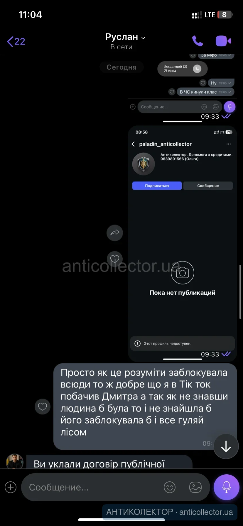 Є ще Ольга яка ігнорує смс а Дмитро написав мені що це погрози і тд