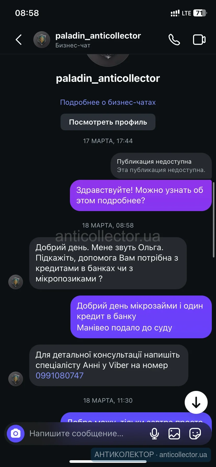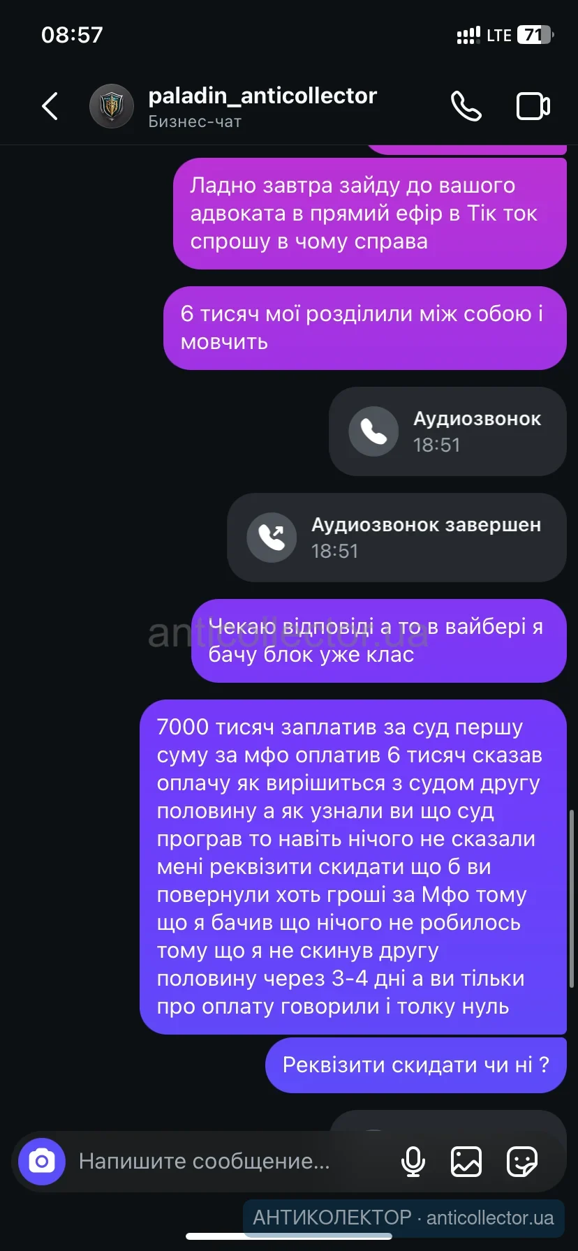 Паладін Консалтінг. Погрози судом та блокуванням рахунків від МФО.