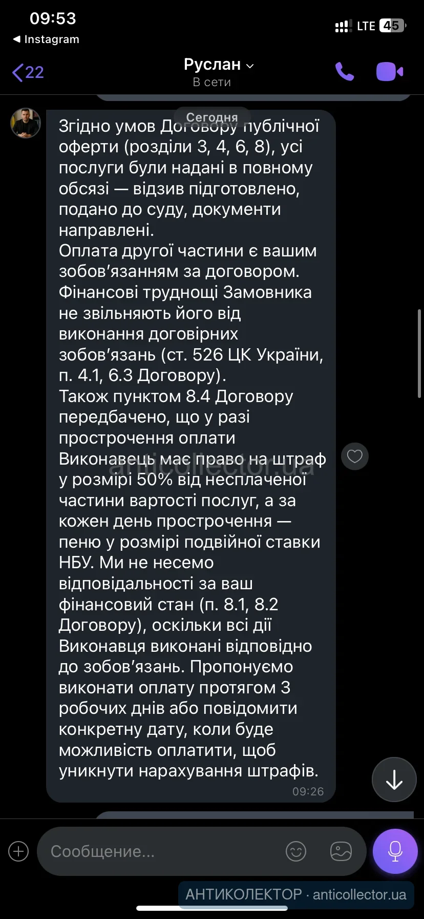Я проплатила лише частину,побачивши,що так званий юрист спілкуватися зі мною аж ніяк не хоче