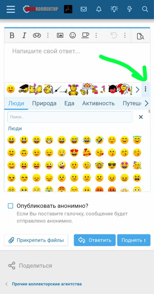 Чтобы отобразить все смайлики, нажмите справа три вертикальные точки: