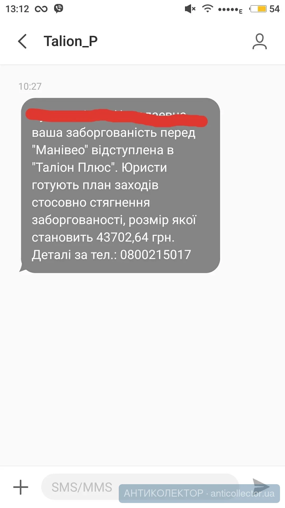 Мне такое пришло смс сегодня отримано дозвіл на примусове стягнення Вашого боргу в Манівео - візит за місцем реєстрації та місцем роботи! Повідомте родичів, щодо стягнення шляхом опису спільного майна та вимогу на сумму.