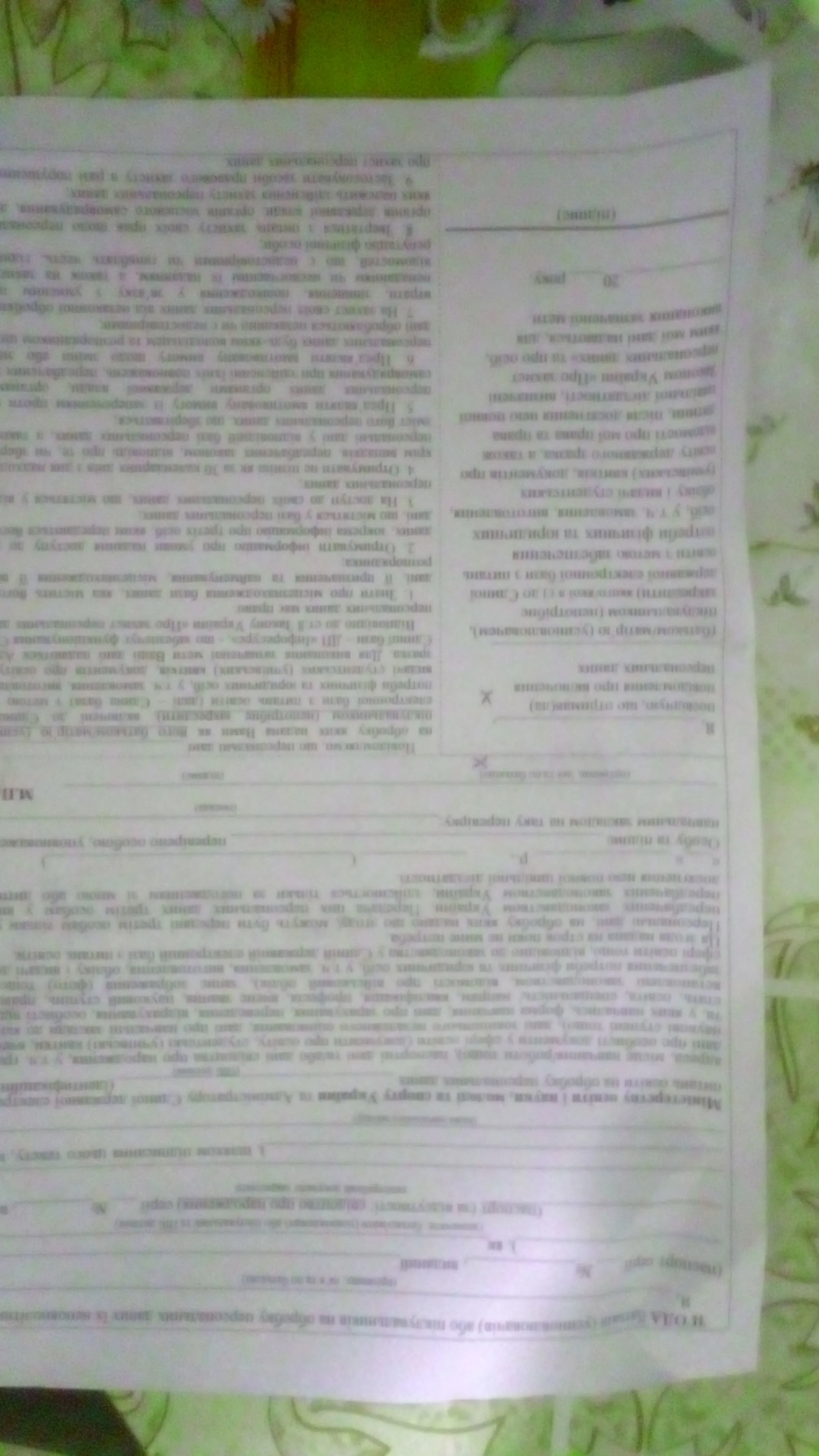 Приїхавши до дому з роботи, донечка принесла мені цю анкету.(Вчителька поряд живе, принесла вдень..)..