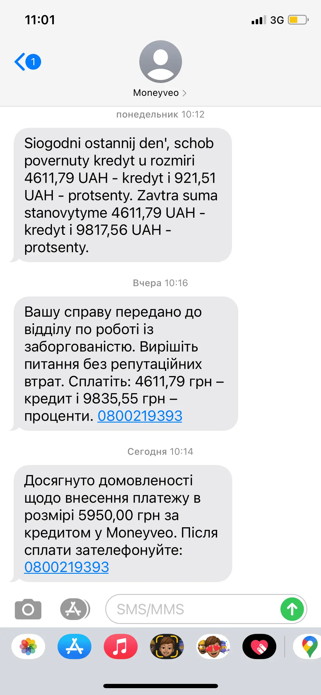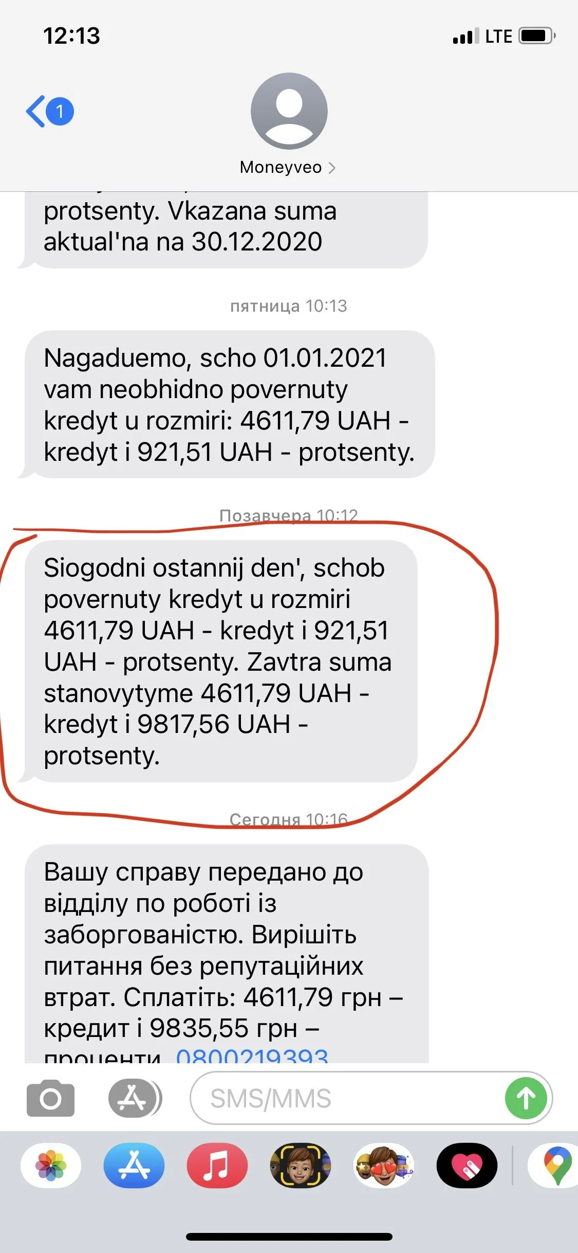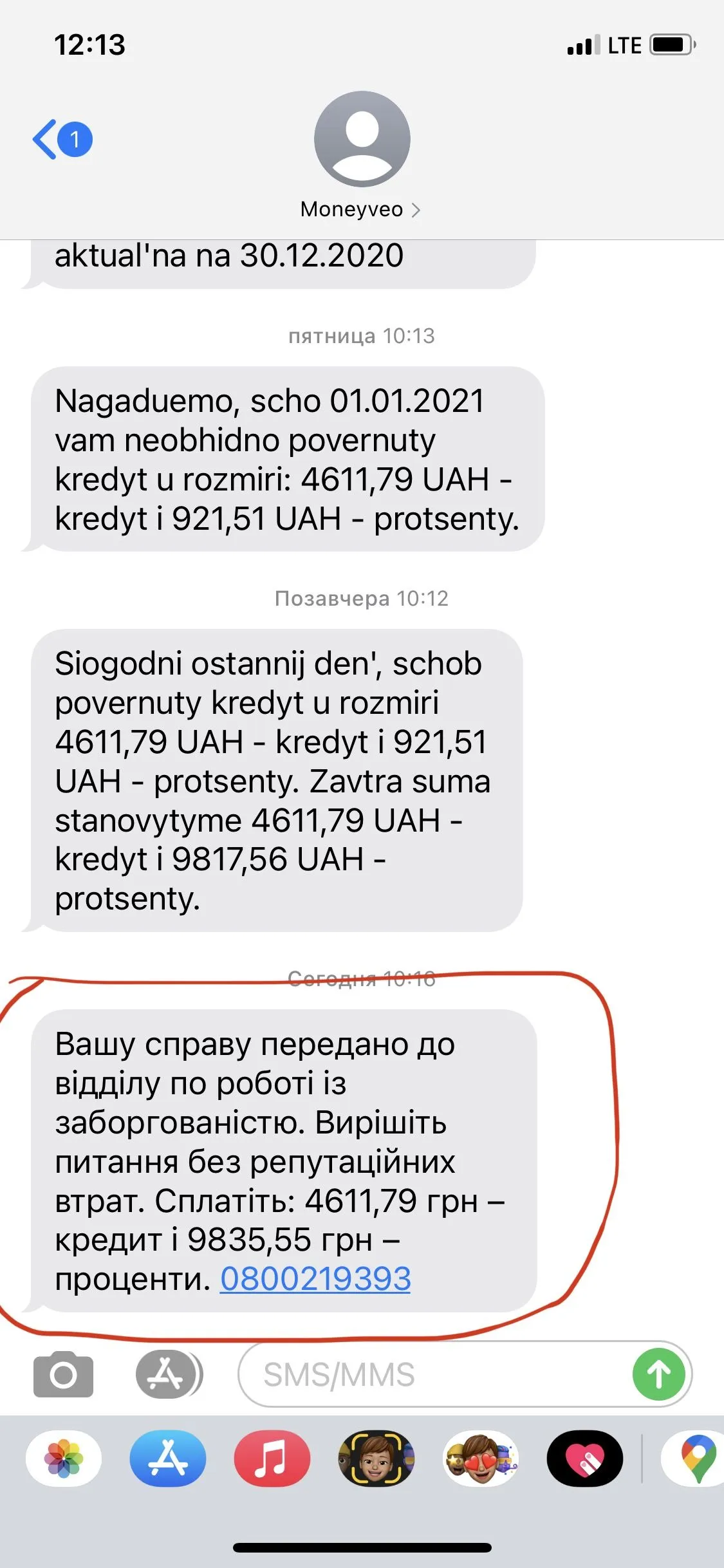 Потом приходит сообщение, снова напоминают, что оплатите 4611,79 тело и процент 9835,55 дабы не испортить свою репутацию