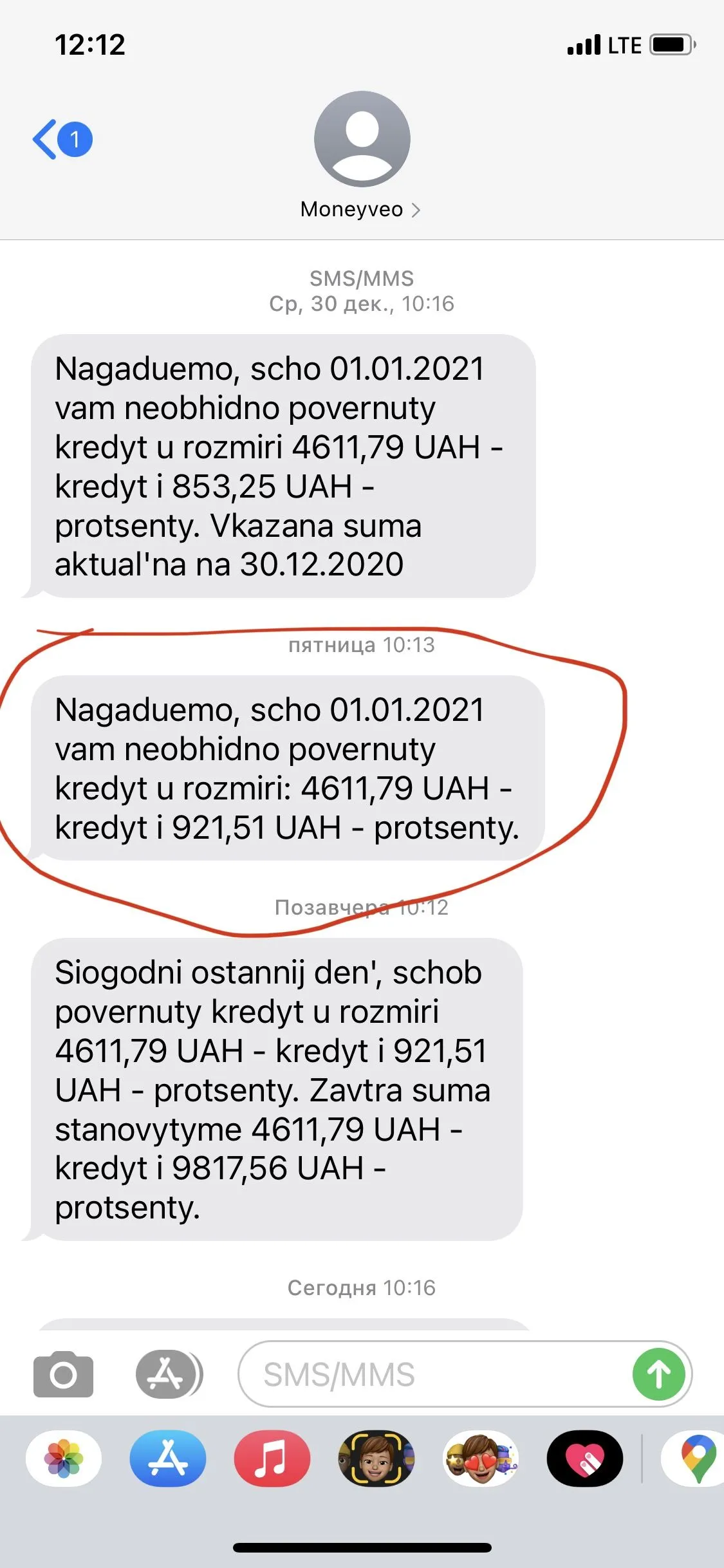 Приходит смс, скрин прикрепляю