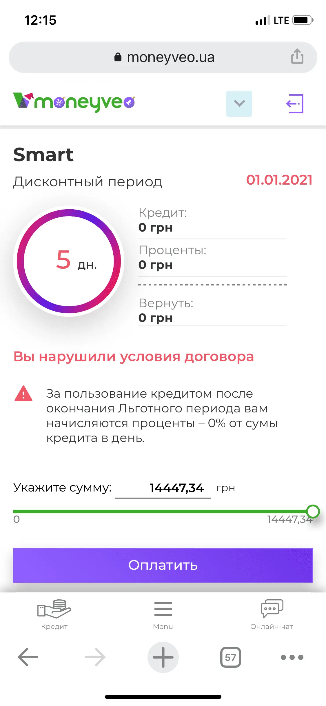 Вчера 05.01.2021 вышел на просрочку