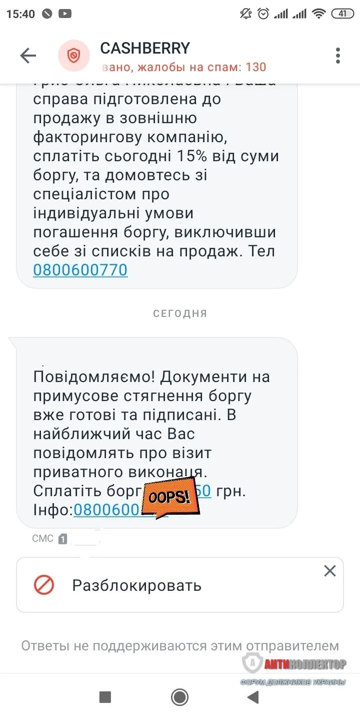 В мою сторону все тихо. У мене з ними довга історія. Мені списати все до тіла, і зробили реструктуризацію, вже давним давно. А до того були пролонгації. Я все чемно платила. Останні вроді тисячі 2, вже точно не пам'ятаю, не заплатила. Було пару смс, дзвінків, але я номер поміняла. Прийшло пару листів. Все, зараз тихо. Давно про них не чула