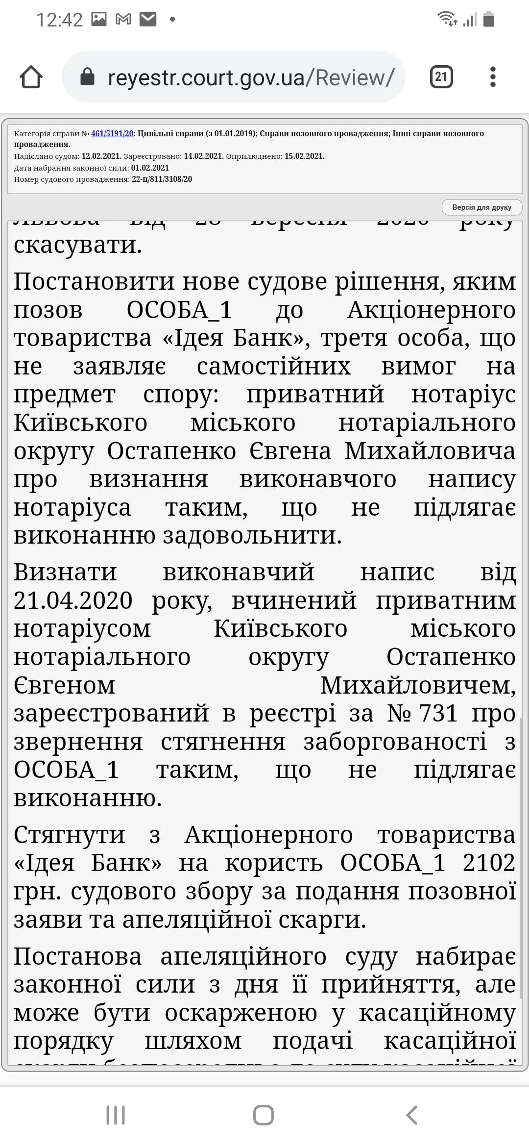 Победа в суде по ИН от Идея Банк
