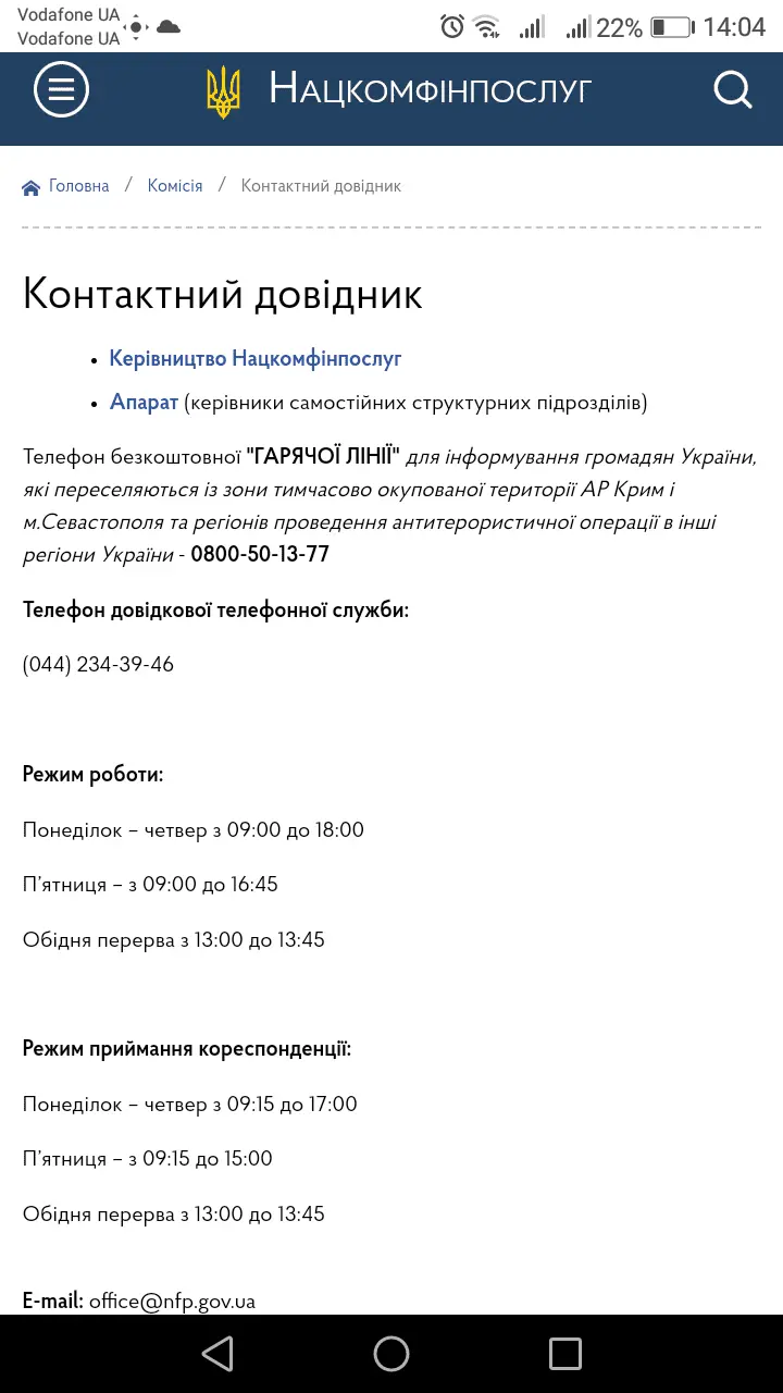Подскажите пожалуйста, как позвонить в НАЦКОМФИНПОСЛУГУ.
