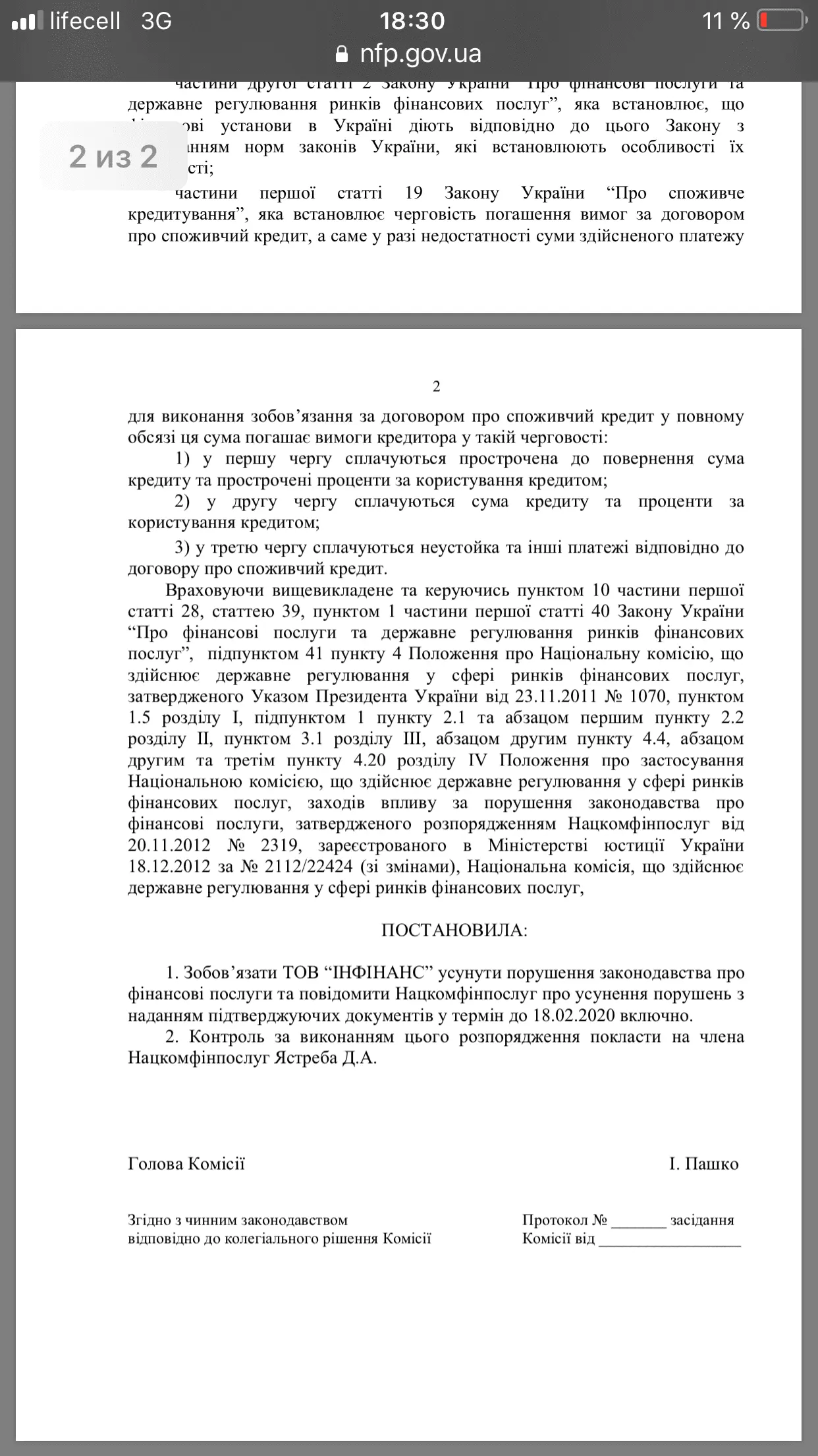 Распоряжение гласит о нарушении очередности зачисления платежей, а как что было засчитано - нужно смотреть в ответе Нацкома по твоему обращению, там должен быть подробный ответ.