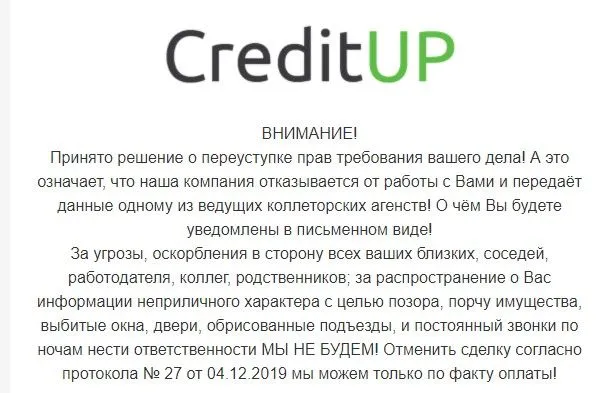 В разі неоплати, майно Вашої сім'ї буде описане, арештоване і вилучене в повному розмірі кредитного боргу,