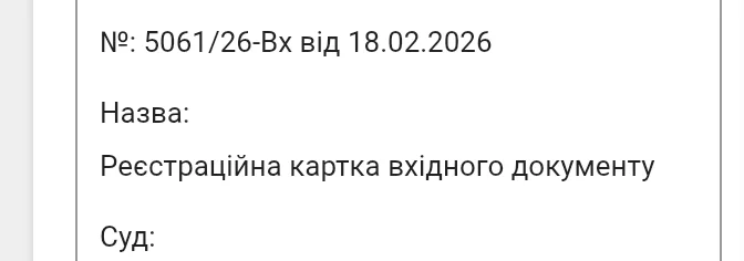 Доброго дня, прийшло в електронний суд реєстраційна картка вхідного документа, по справі що набрало законної сили.