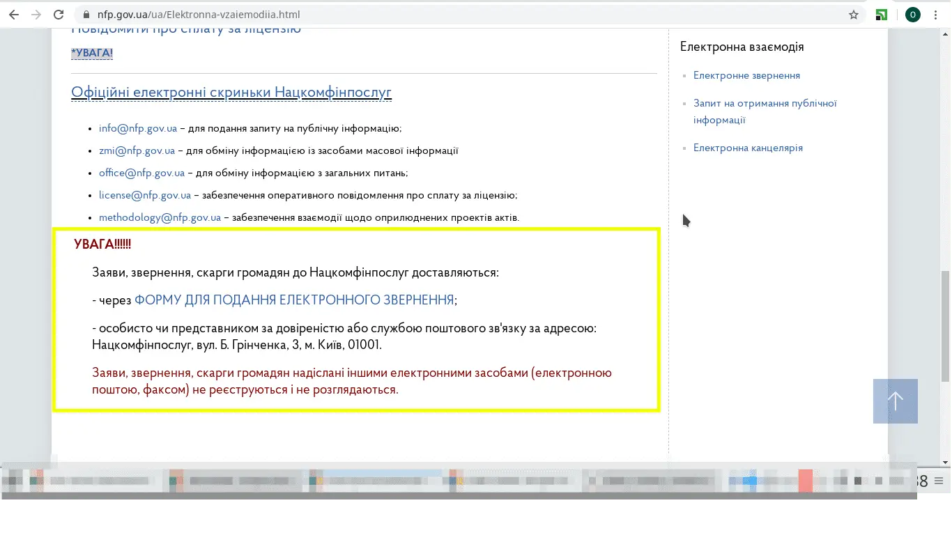 На форумі вже писали якось, що Нацком давно не приймає звренення на пошту..