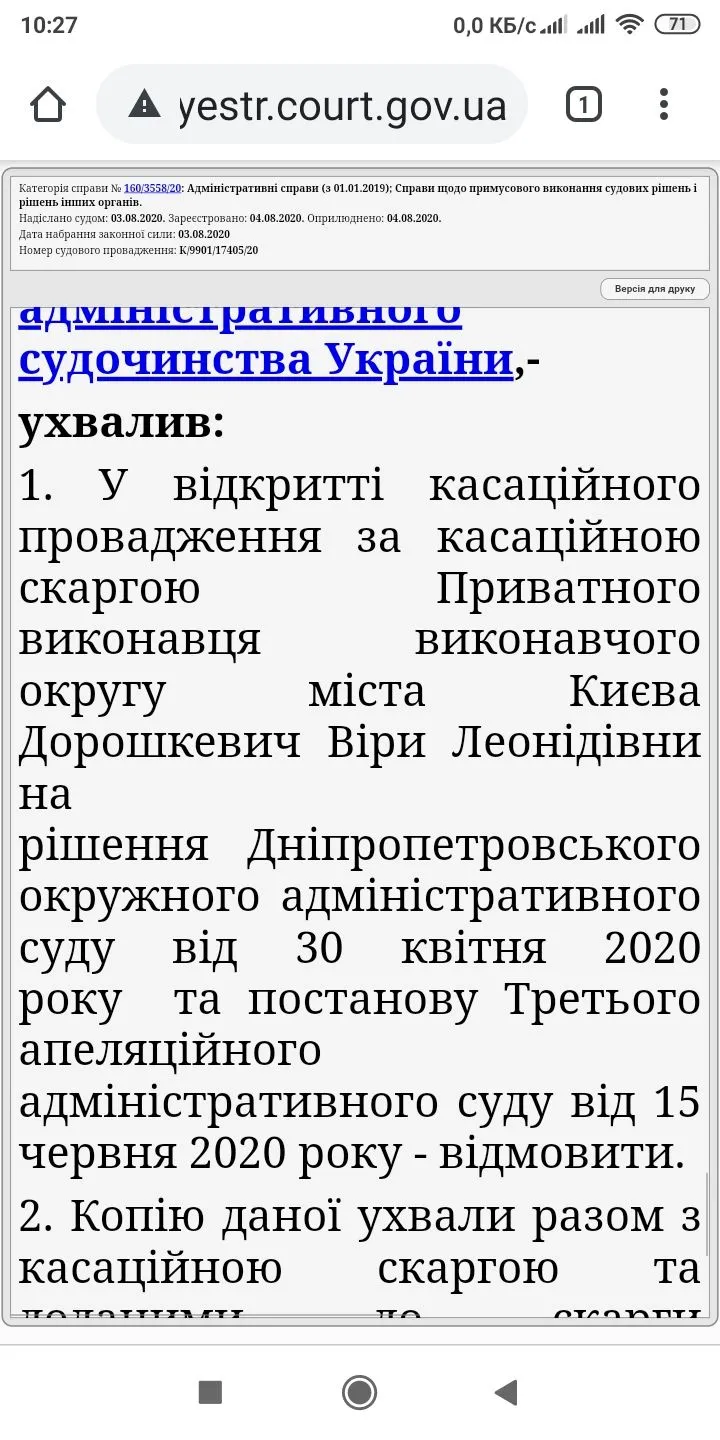 Зазначу, що раніше ВС ухвалював рішення у аналогічних справах, якими повністю відмовляв виконавцям у задоволенні касаційних скарг на рішення судів про визнання протиправними та скасування постанов. Номери судових справ - № 580/3311/19 та 804/6996/17.
