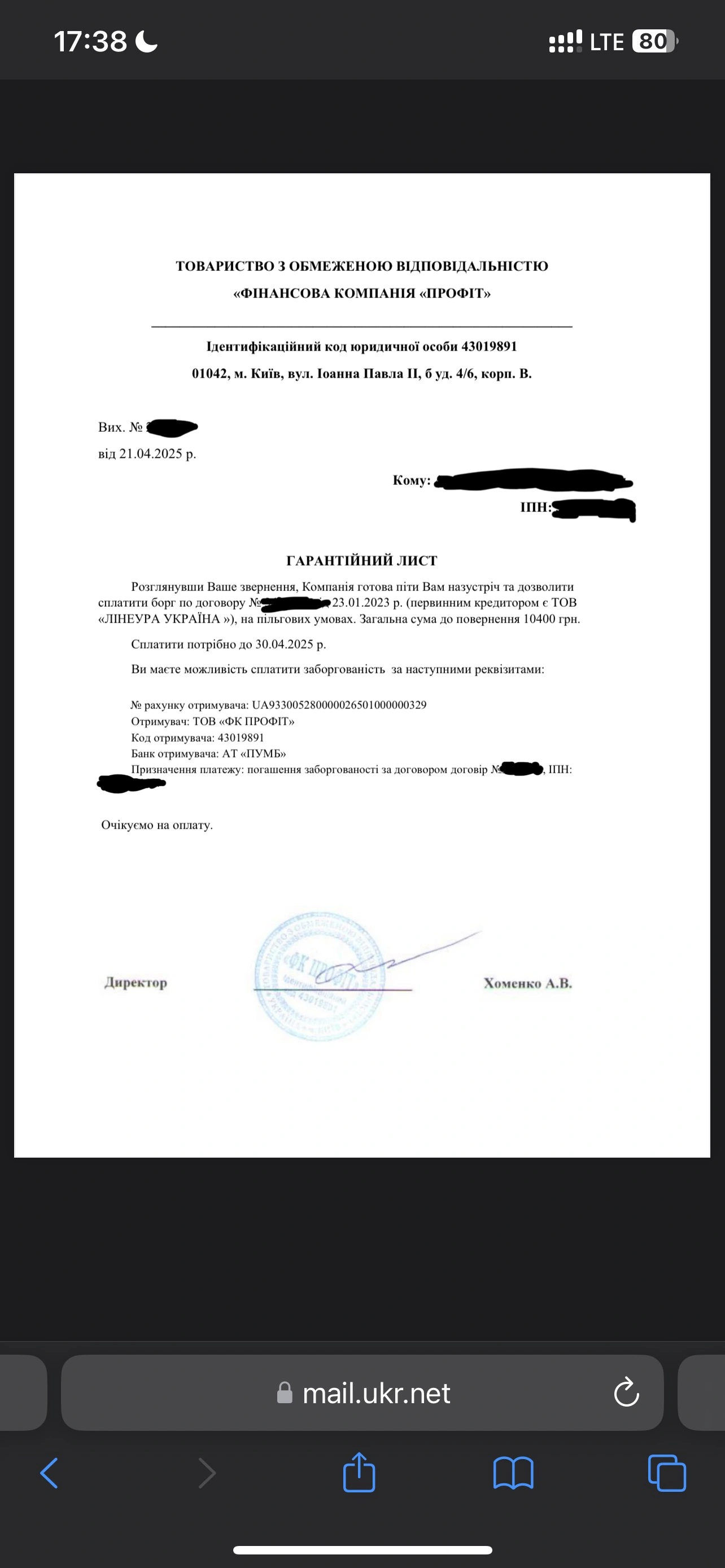 Доброго дня, отримав гарантійний лист на почту, хочу дізнатись чи правильно він заповнений. Якщо ні підскажіть що попросити змінити