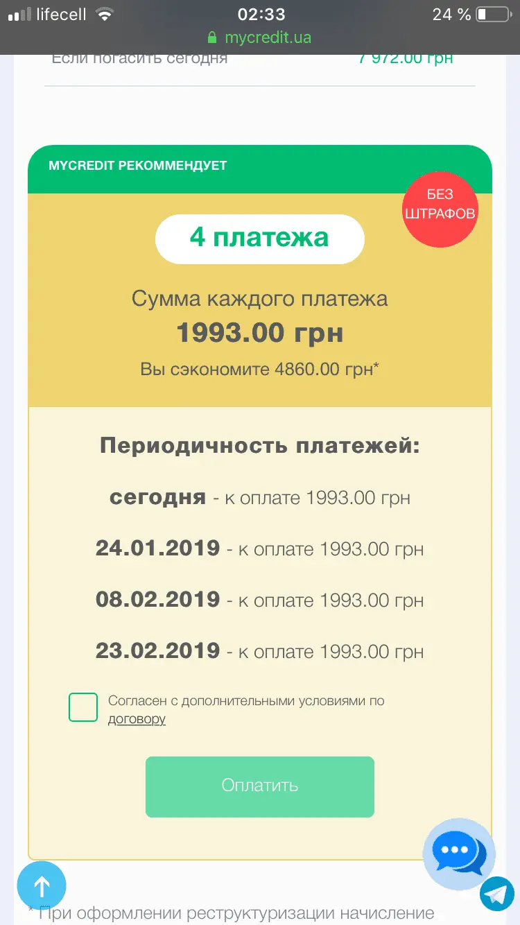 Каждые 2 недели платить и на этот срок все проценты и тд не идут.