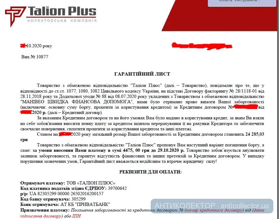 С таликами, маники им передали. Что самое интересное, талики были лояльны с самого начала. Не кошмарили вообще, смс и пару звонков за 4 месяца.
