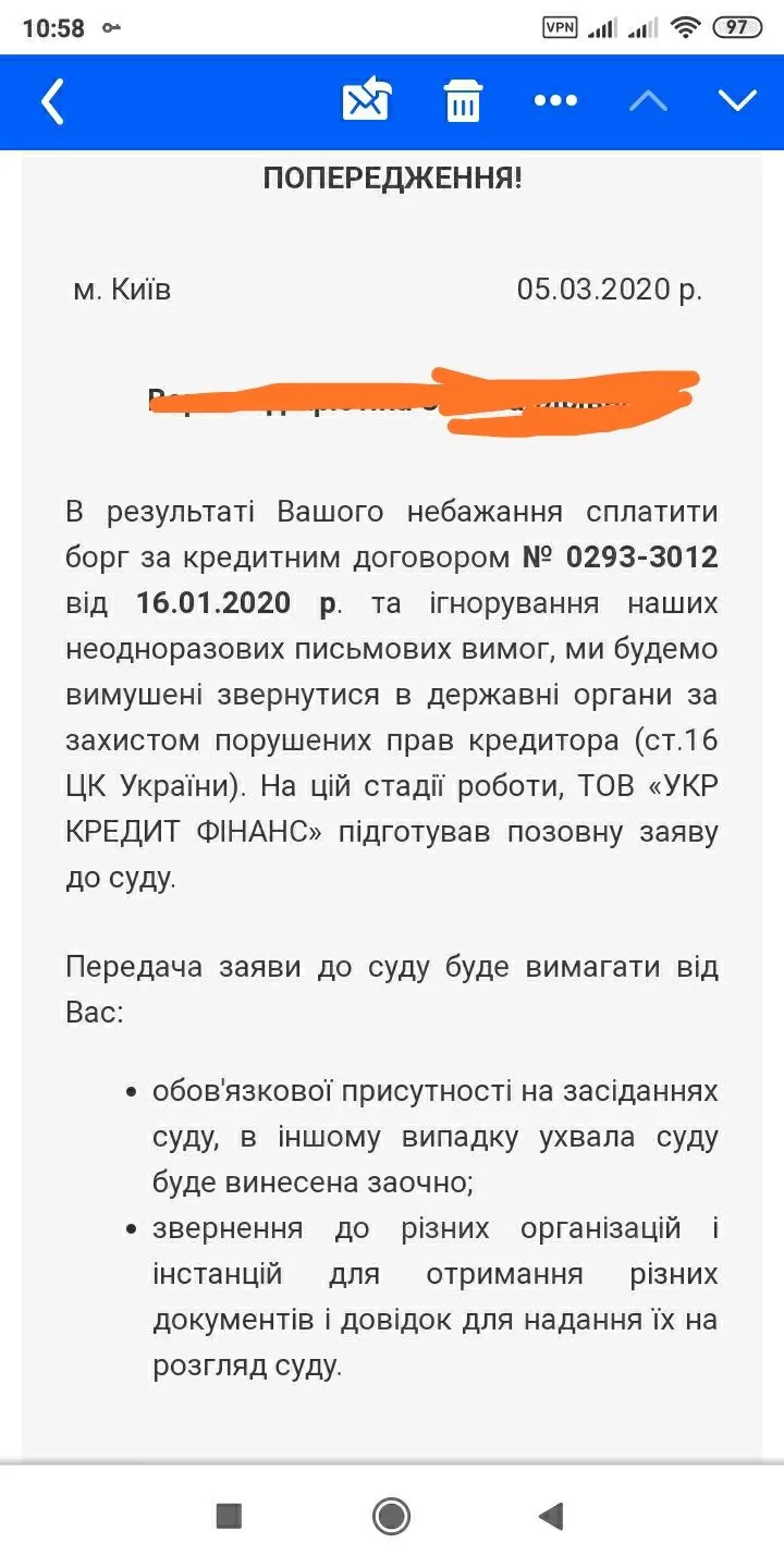 О мне тоже такое сегодня пришло на электронную почтуОколо месяца только прострочки,с ними вообще не общалась с 1 дня,неужели за такой короткий строк они будут подавать в суд?