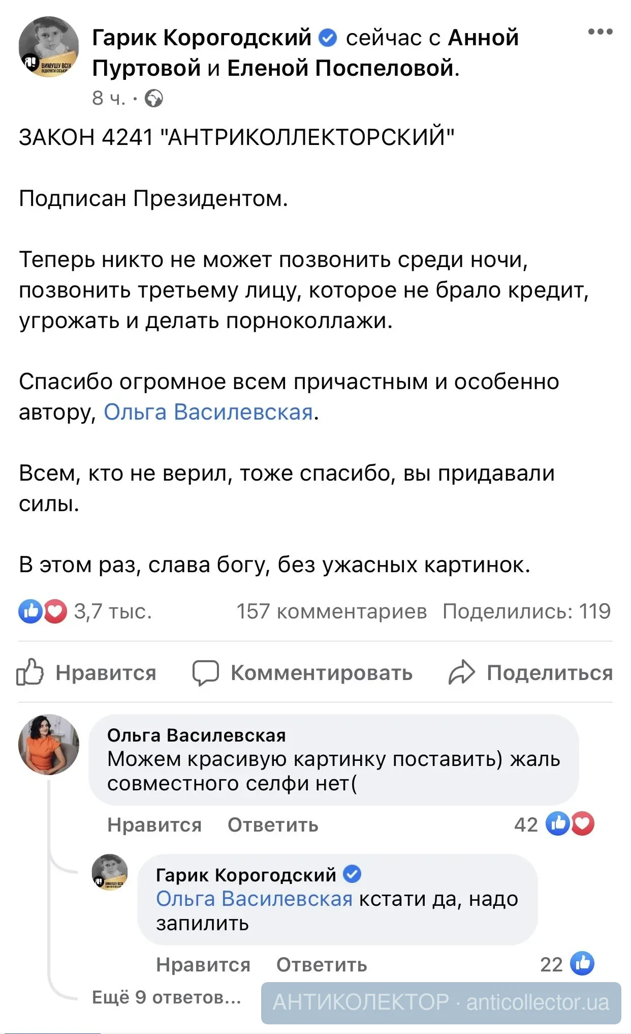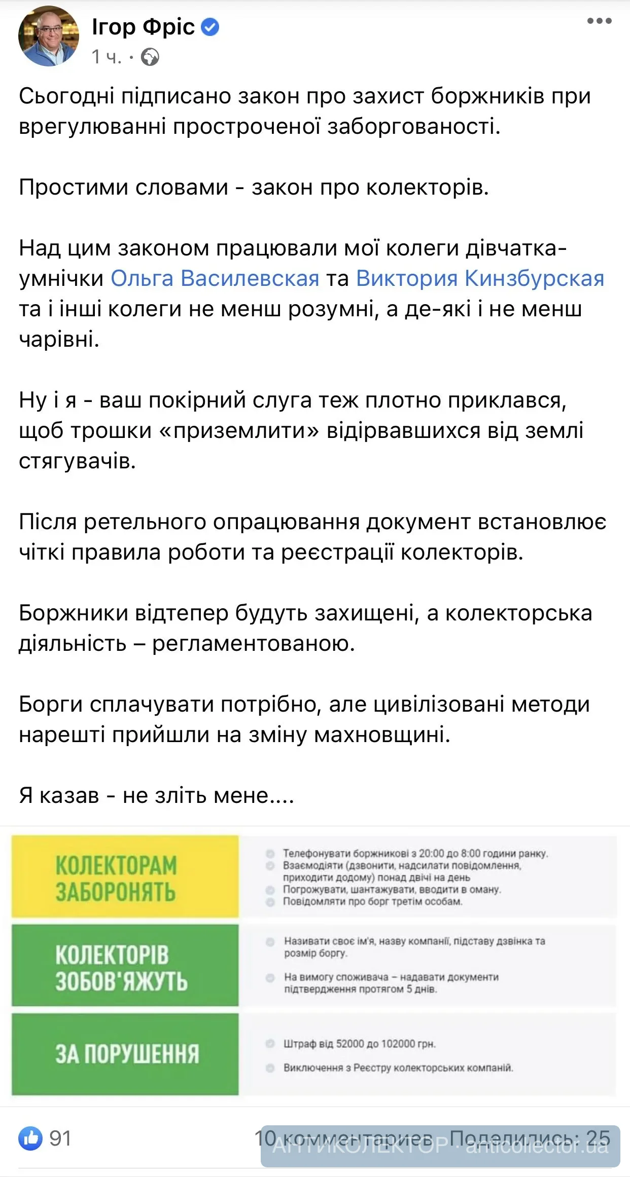 ➡️ Сьогодні нарешті підписано наш законопроект #4241 щодо захисту боржників від неадекватних колекторів!