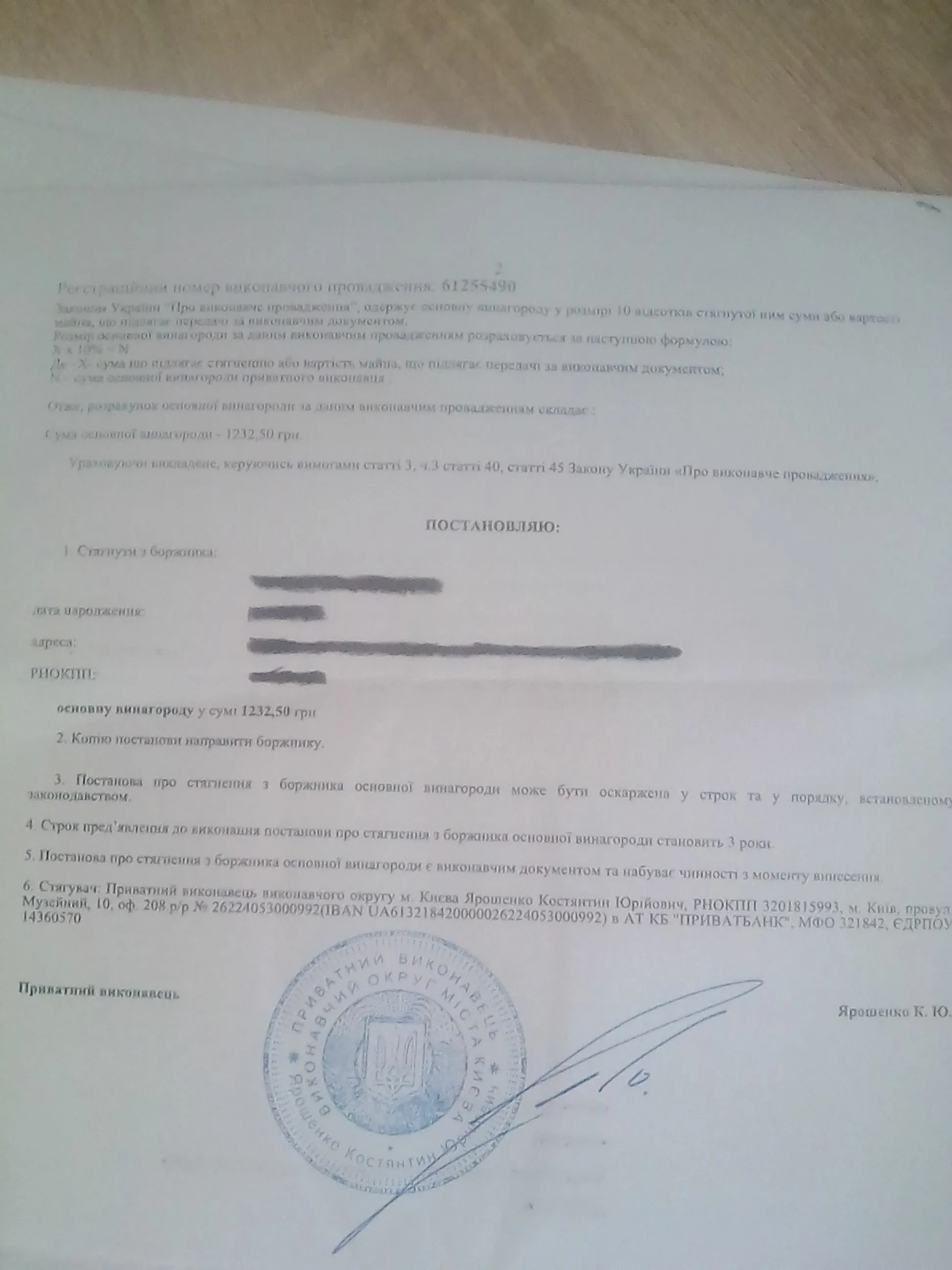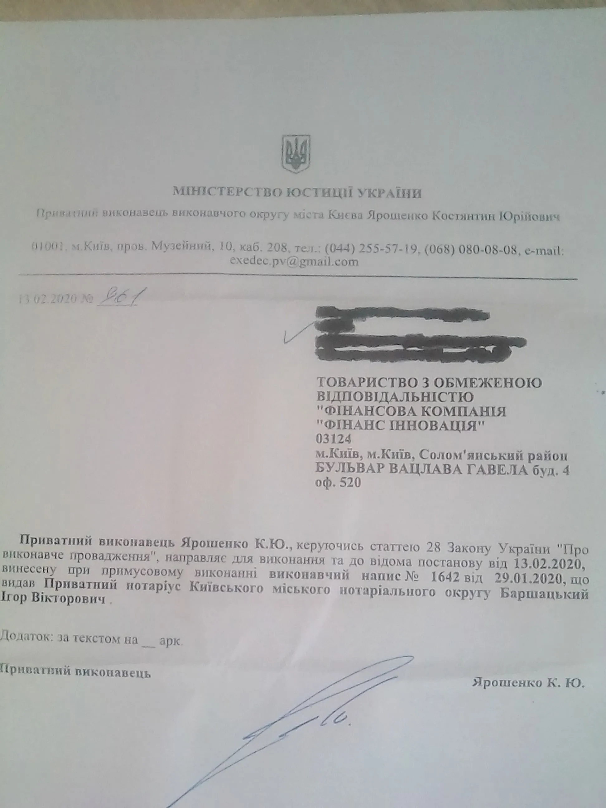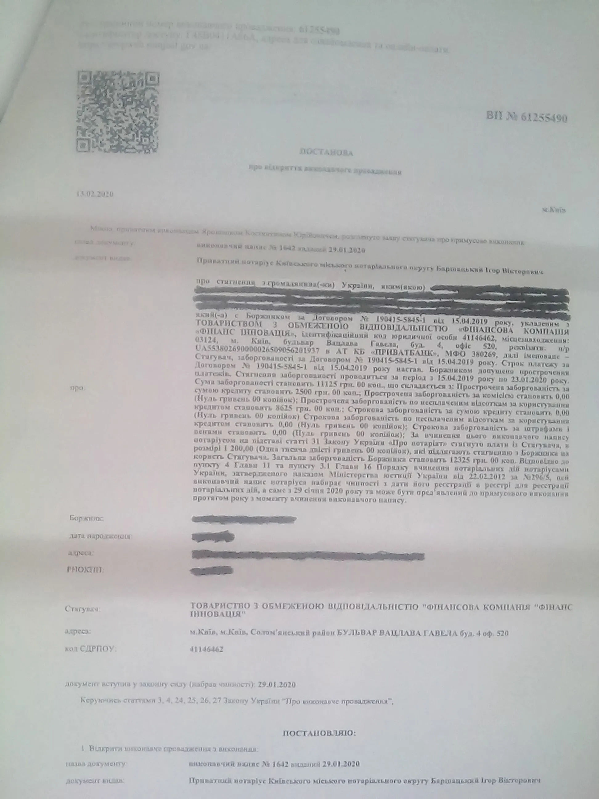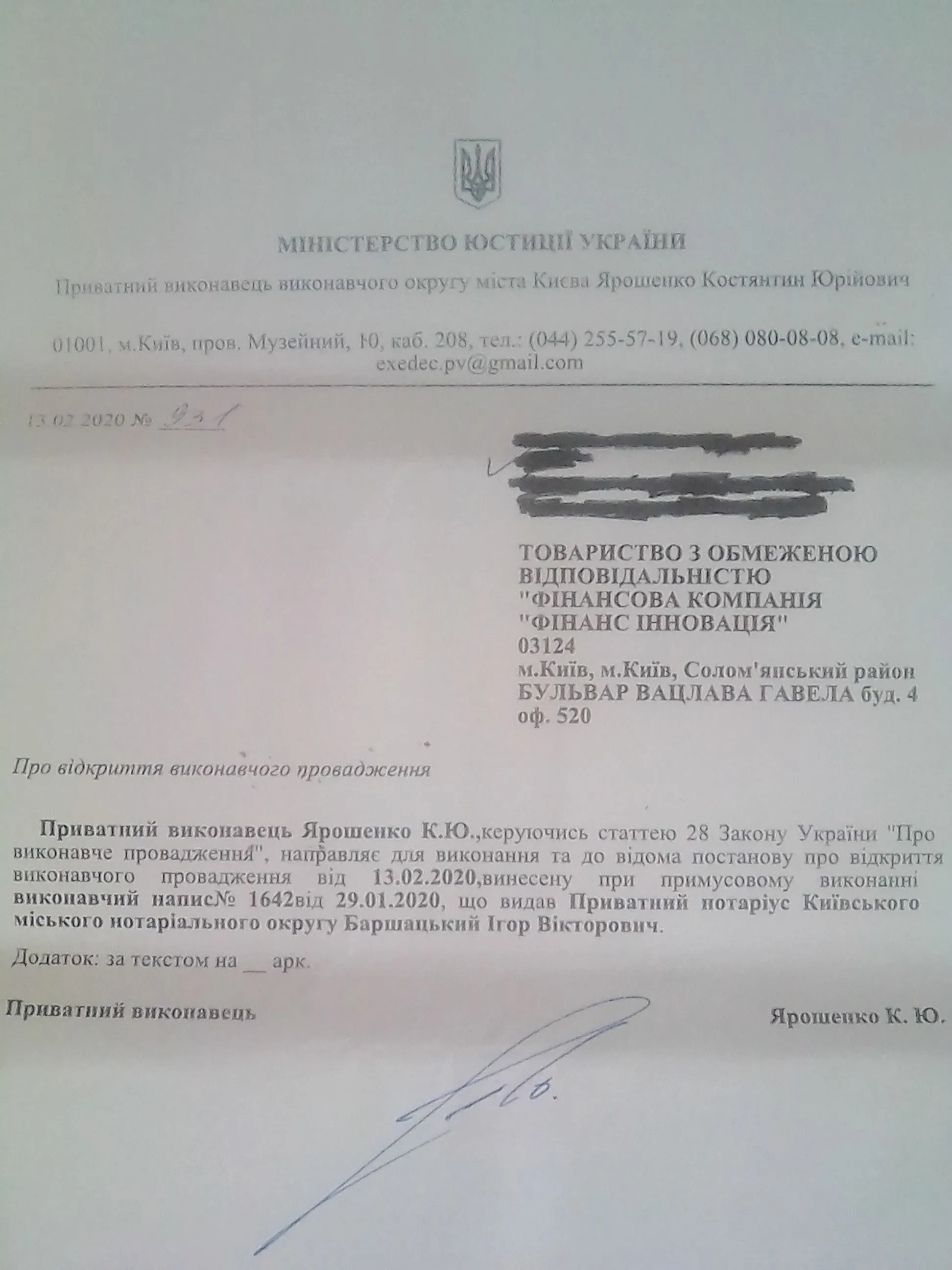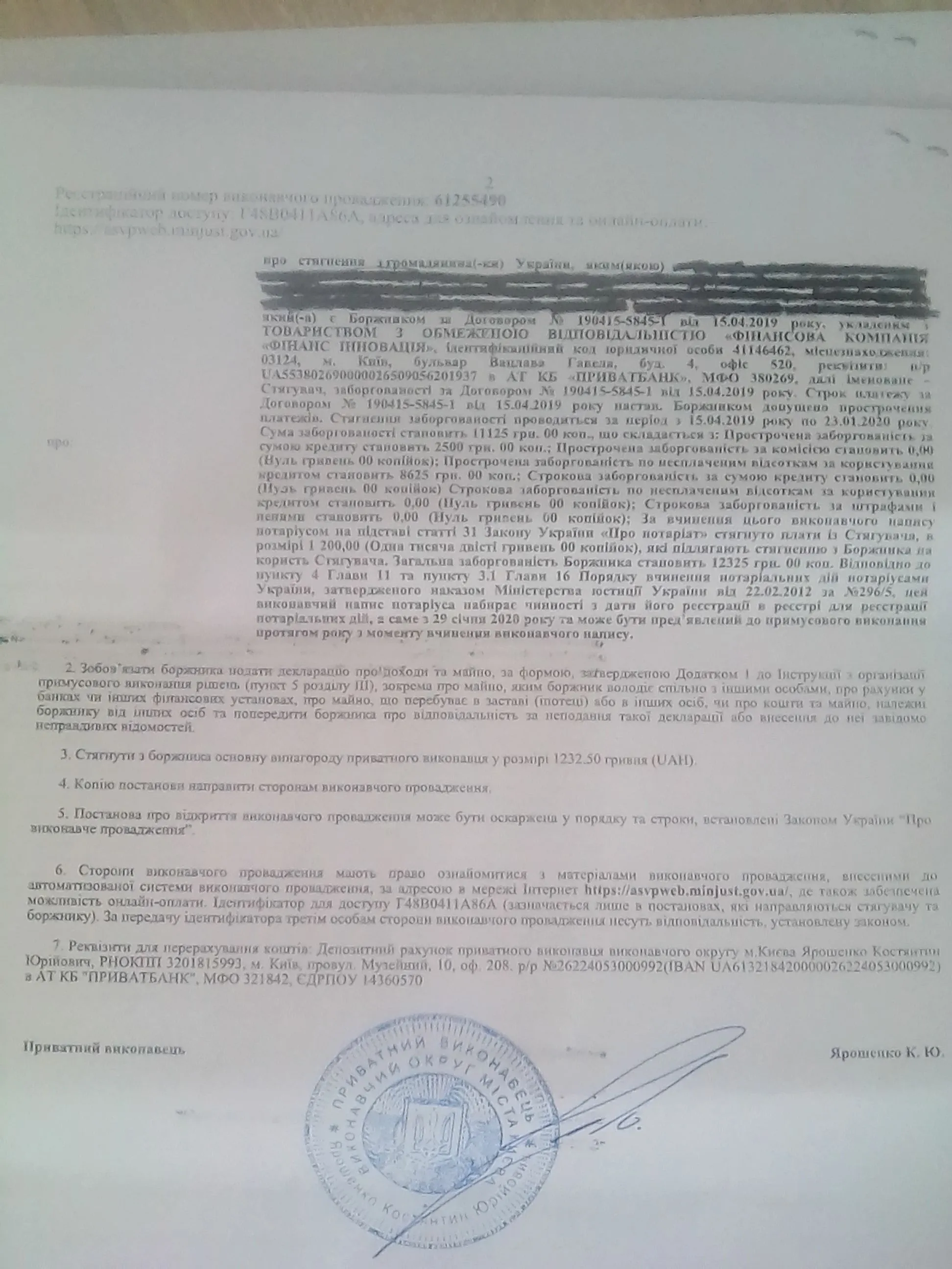 Прийшов лист від "Фінанс Інновація", про відкриття виконавчого провадження. Потрібна порада хто з тами проблемами стикався та що тепер чекати, як діяти далі?
