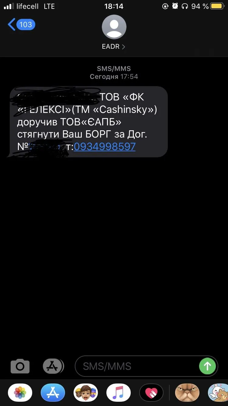 В моем случае пишут смс мне, маме и парню (его номер был контактным). Кашинский на все 3 номера писал, что будут продавать. После европейская агенция начали слать свои смс тоже на все 3 номера. Не знаю как в вашем случае, но у меня такая ситуация. Как я могу ошибаться, если каждую неделю приходят смс, а мне потом мама скрины присылает???