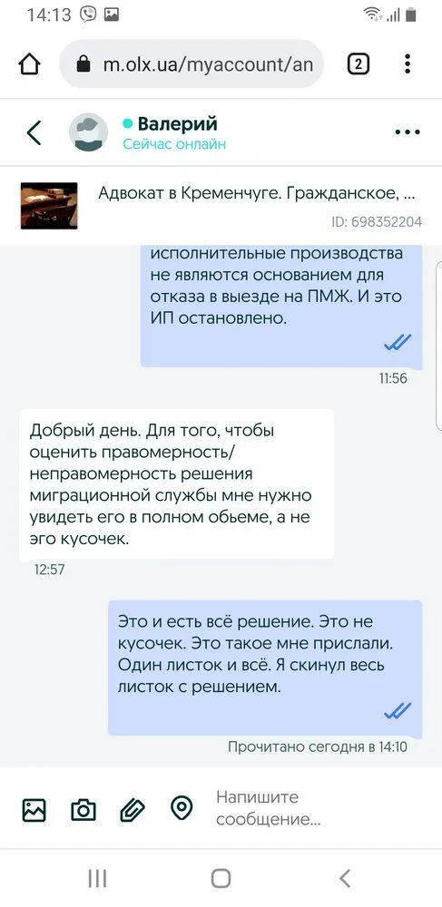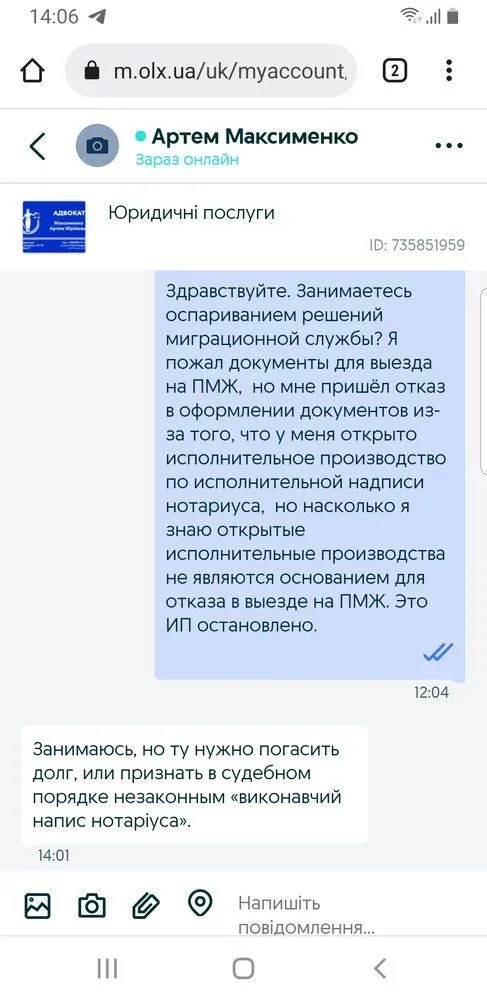 Обратился я к адвокатам из своего города о помощи , чтобы подать иск против миграционной службы и её действий. На скриншотах предоставляю ответы адвокатов. Выводы делайте сами.