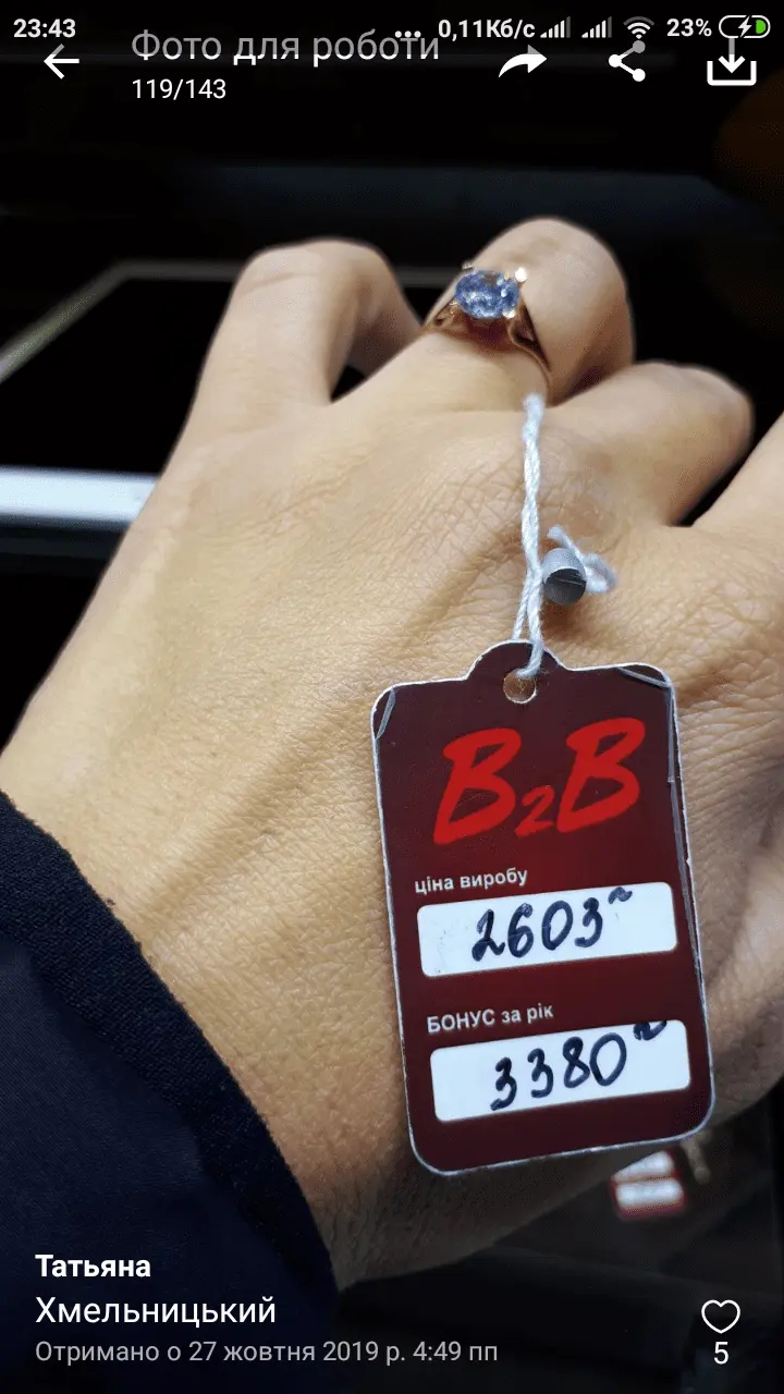 Я не могу прислати у меня на руках нет изделия. Я же писала я вложила 1000 на сертификат ето фото с магазинов цена первая и цена вторая что возвращается ....как буду в магазине посмотрю что на второй стороне бирки.Вы мне пробу сфоткайте.