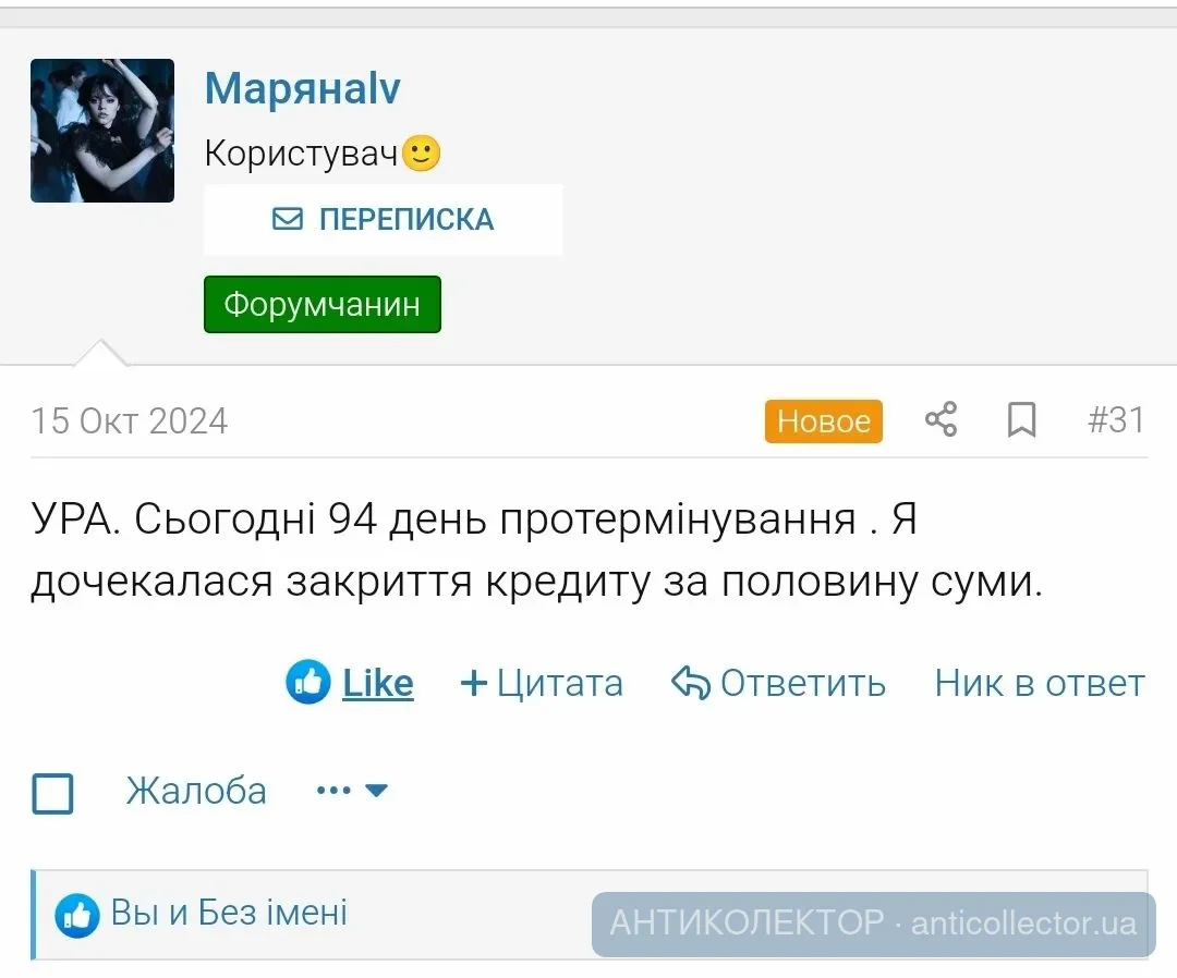 Мені з 20 тис. тілом запропонували 75% від тіла (15 тис.) на приблизно 90 днів прострочки.