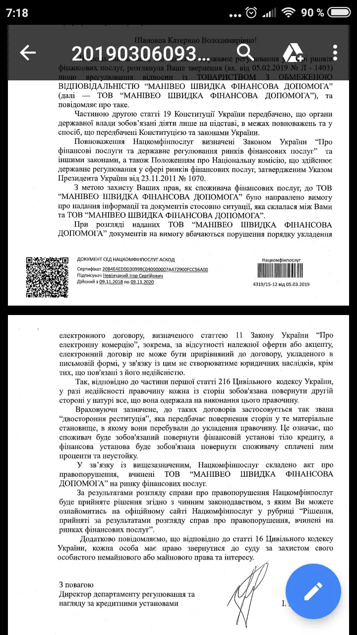 Если вы им уплатили больше тела,я думаю стоит на основе этого ответа требовать возврата средств. А если вы не дотянули с оплатами до тела,то доплатить и требовать справку о закрытии и ануляции личного кабинета.Пришёл ответ из нацкома на манивео.Если я правильно понимаю я должна им вернуть тело а они мне все пролонгации? Как это сделать?звонить им,или писать письмо?в кабинете ничего не изменилось.