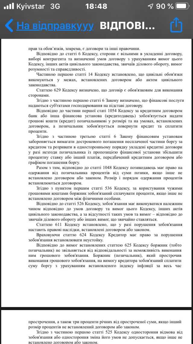 это стандартная отмазка?Пришел ответ по Кашинскому ,помогайте разобраться тело 3 к ..насчитали 14 ,ответ не понимаю ,договор копию предоставил