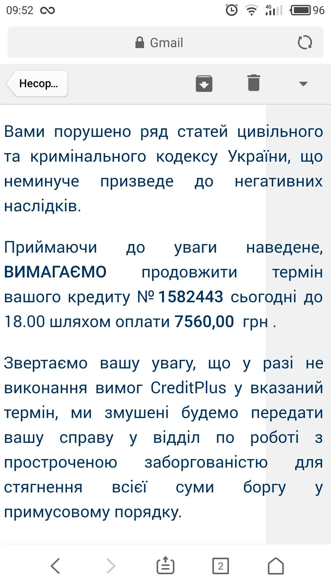 Який сенс в пролонгаціях, тим-паче коли такі драконівські відсотки? Я не розумію, ЛЮДИ!!!! З вашого листа 7560!!!! Тільки заради того щоб не дзвонили "какали-шакали" да хай дзвонять, а ви за ці кошти підіть і гарненько потусіть до ранку. Якщо вони у вас лишні то повірте від друзів буде більше дяки і позитивних вражень, чим від гадів отих дзвонящих!!!Мне такое тоже приходило, так как только просрочка началась 9 день, один раз их пролонгировал, больше немогу, так как с финансами проблема. По большему счету скоро просто начнут звонить каллы