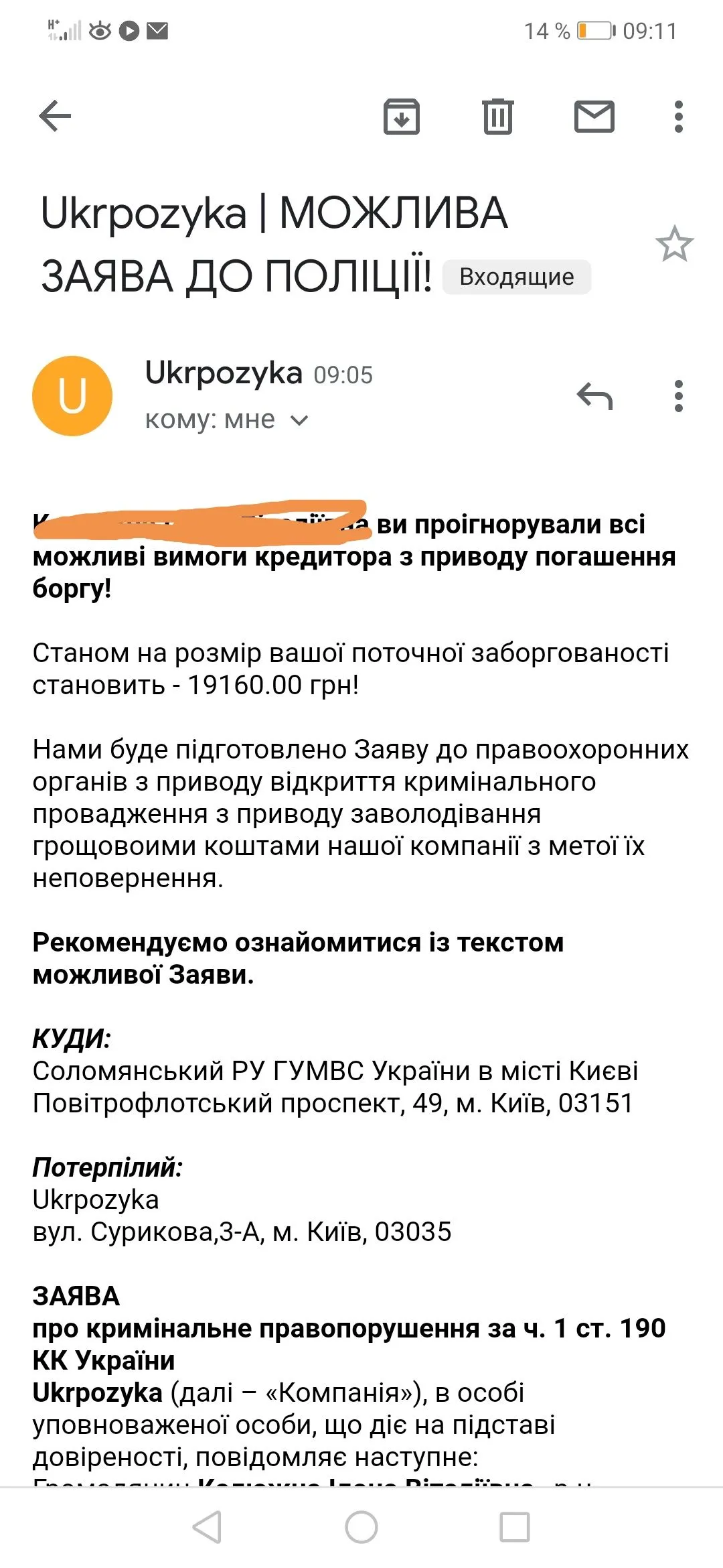 Здравствуйте! Ситуация какая, до сегодняшнего дня данные конторы вели себя тихо и мирно(просрочка в обеих более 2 месяцев). Так как самые тихие, то решила просто ждать предложения оплаты за тело. Обычно от них с утреца сообщение на электронку, что не дозвонились. Сегодня приходит вот это письмо счастья. Это реально? Или просто забить и ждать дальше?
