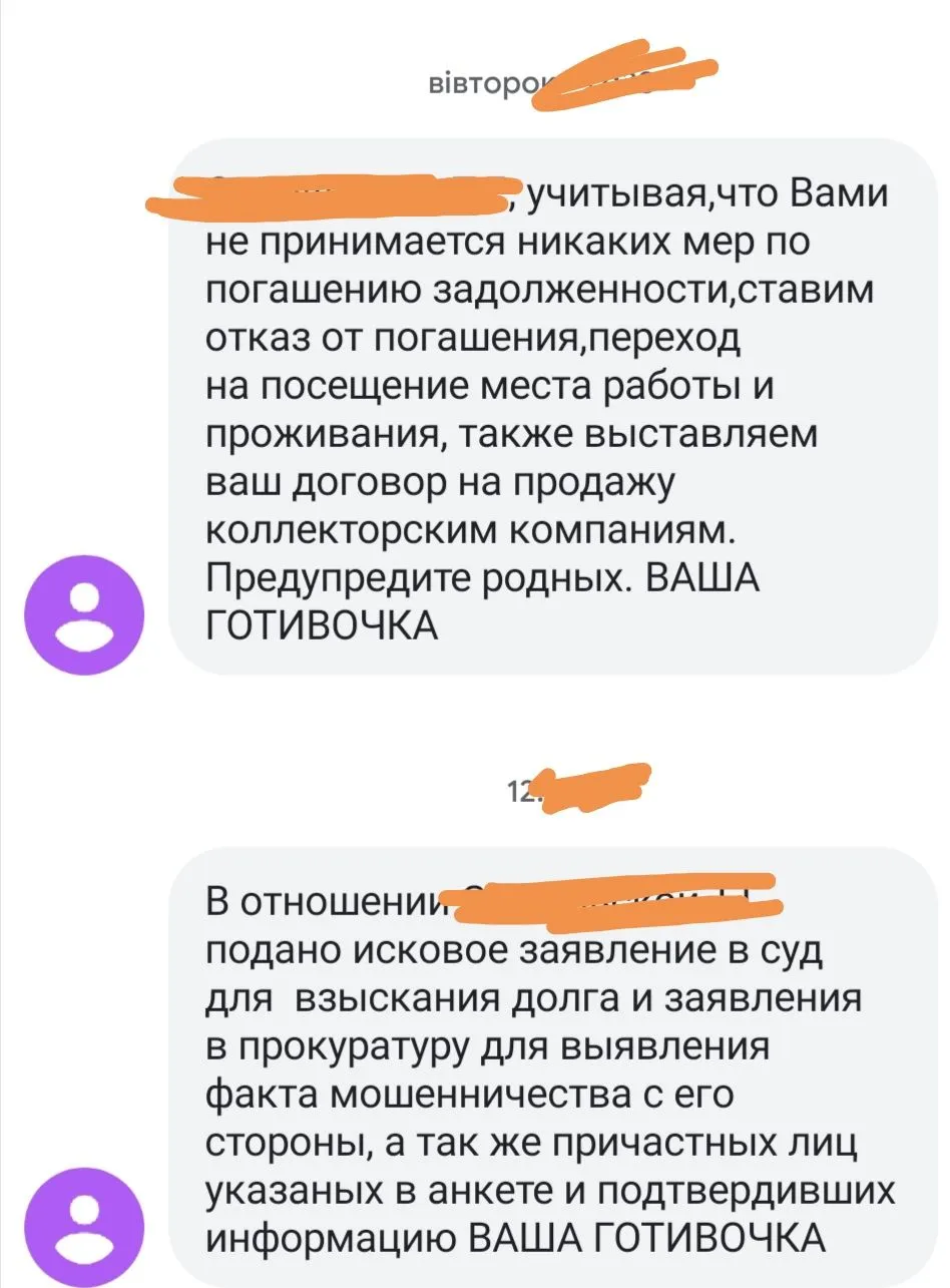 Понятно, я пока что получала только про рассылки и обзвоны. А такое первый враз, просто хочется, чтоб не застали врасплох. Первую серию кредитов я как то летом умудрилась с минимальными потерями закрыть.. Но не все, и они потянули дальше. И у сына еще..Таня, Ваша наивность на столько обескураживает, что давайте все таки отвечу. Ни кто,ни куда,ни чего на Вас не подаст. Эти пугалки имеют цель надавить на Вас психологически,и не более. Таких СМС каждый тут получает пачками,и давно не обращает на них внимания. Поэтому и смотрят на Вас так удивлённо,и реагируют соответственно.