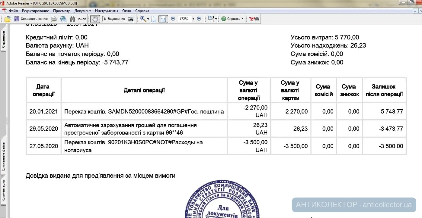 На мой вопрос по поводу основания для начисления мне этих сумм, банк дал такой ответ: " Відповідно до п. 1.1.2.1.8 Умов та правил надання банківських послуг Клієнт зобов’язаний відшкодувати Банку в повному обсязі судові витрати, зокрема, але не виключно, витрати зі сплати судового збору, витрати на надання правової допомоги юридичних фірм, адвокатів, інших осіб (у разі залучення їх для представництва інтересів Банку), пов’язаних із розглядом суперечок за цим Договором в судах усіх інстанцій, у т. ч. апеляційної та касаційної, а також на всіх підприємствах, організаціях усіх форм власності, в органах державної влади та управління."