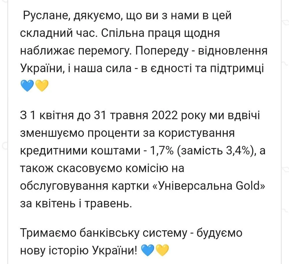 «Льготные условия договора под 0,00001% и без обязательного минимального платежа действуют до 1 июня 2022 года по кредитным картам: Карточка Универсальная, Карточка Универсальная Gold и премиальные карты», - сообщает банк.