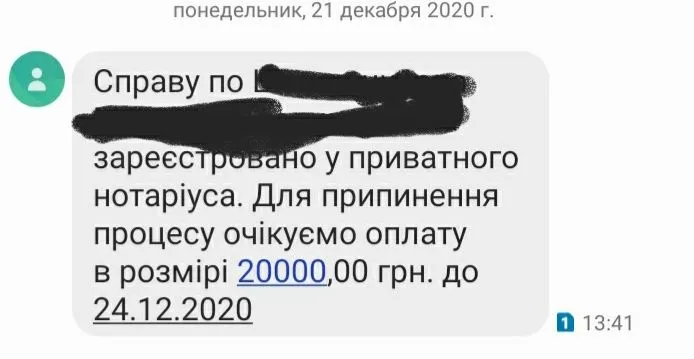 Тоже самое пришло.СМС- Справа по .... зарегистрирована у приватного натариуса !Ерунда или нет ?