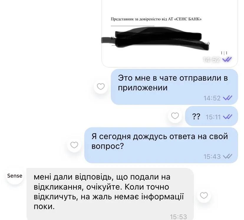А трохи раніше мала таку ж за результатом розмову в чаті банку (телеграм), де мене виставили "трохи дурочкою" і люб'язно надали контакти виконавця.