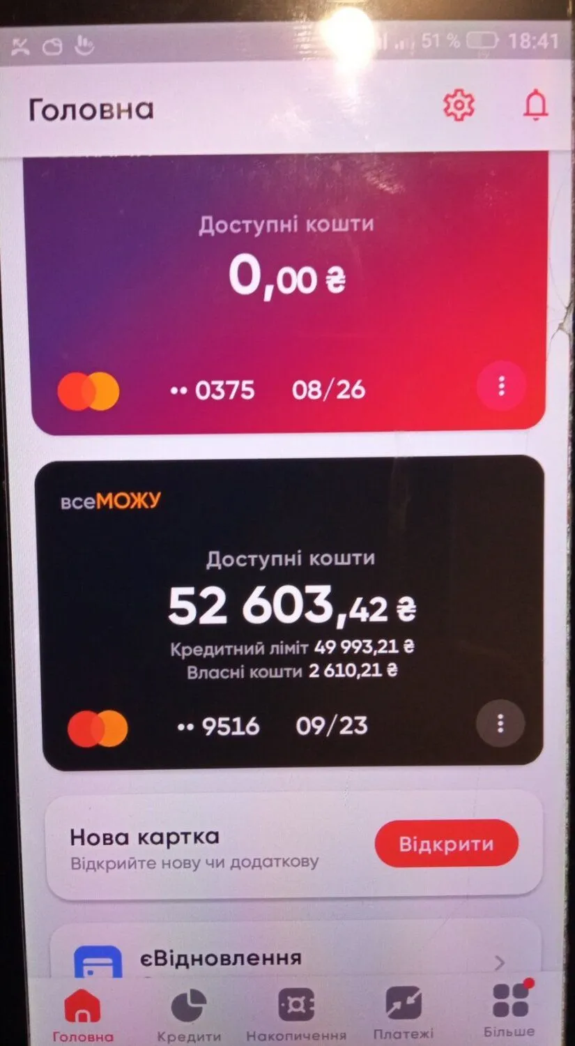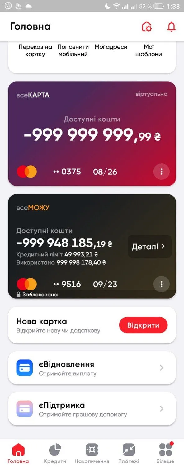 ПУМБ счет с + 51814 грн стал сегодня -999948185 грн