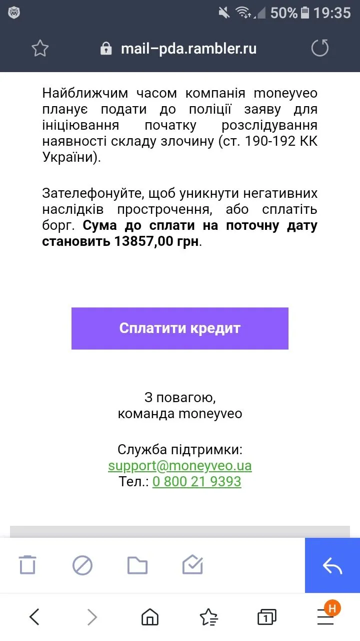 всё что шлют шаражки филькины грамоты, ну подумай, какие заявы в полицию, если кредиты это гражданско- правовые отношения, а не криминальные, могут только в суд подать, проверяй себя на судовій владі, и спи спокойно