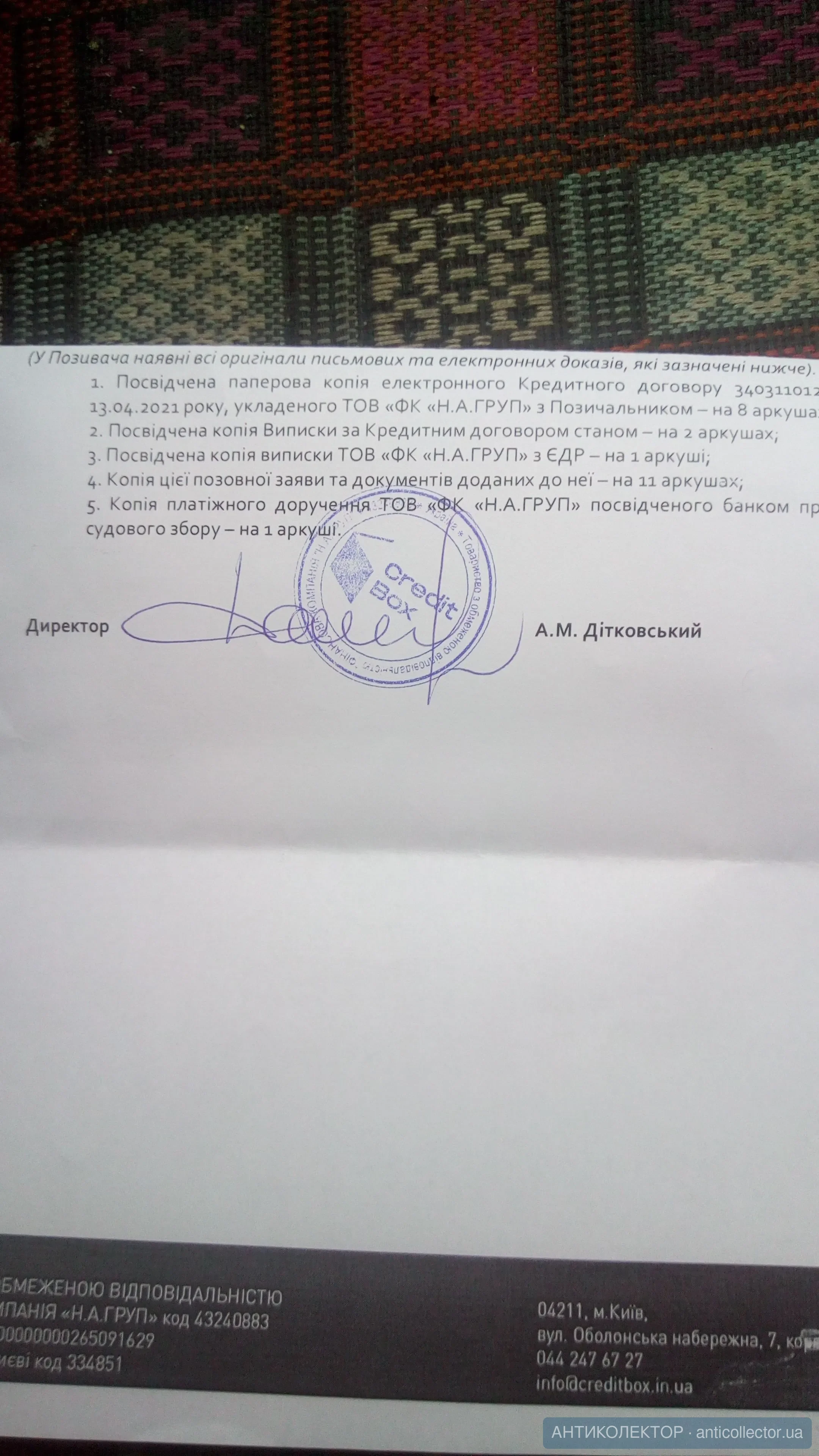 Пакет документів підготовлено! Вика за Вашим договором № 3 в CreditBox буде вчинено виконавчий напис нотаріуса з подальшим арештом рахунків та майна. Пакет документів надіслано поштою. Для зупинки процесу вчинення виконавчого напису терміново сплатіть свій борг до 31.12.2021! Тел.0671326648