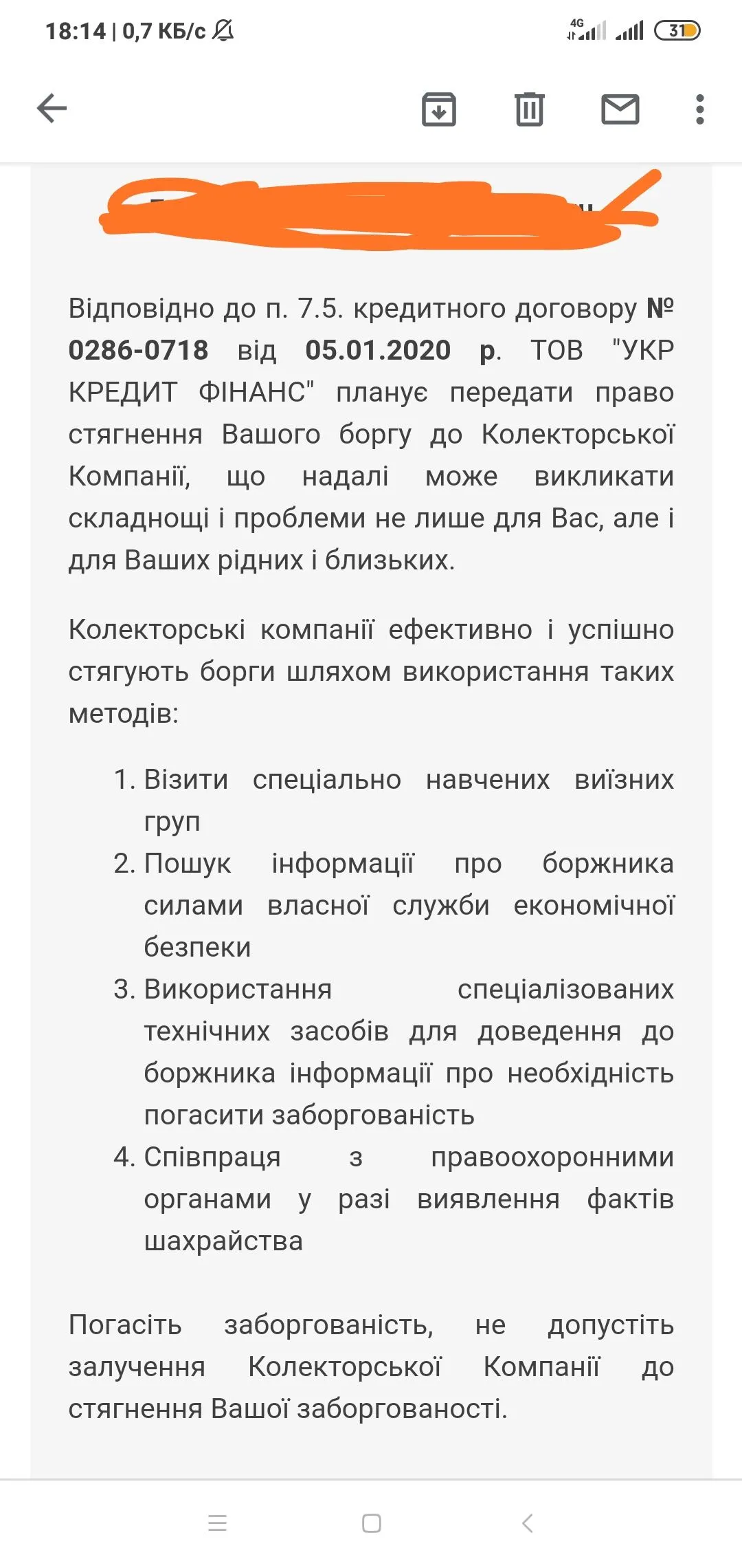 Получал такие письма, оставил на память. Подписи нет никакой, печати тоже. Ребята просто веселят. Они даже не знают, как нужно вести документацию. По своему опыту, жаловаться на них звонить в 1545, на Нацкомфинуслуг, писать им запросы на запрет об использовании ваших персональных данных. Тогда будет результат. Они только по телефону бесстрашные.