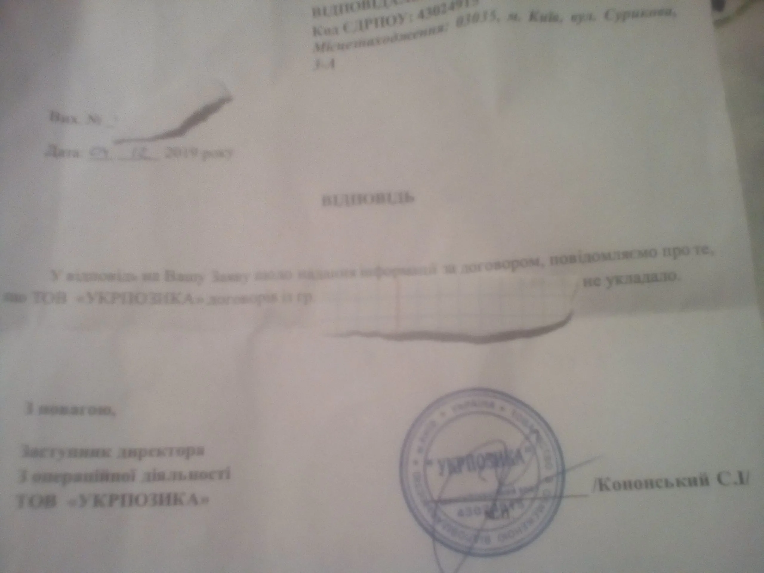 Нет, туда я не обращалась. Я написала в Укрпозику, чтобы они выслали мне договор, отправила 18 октября. И вот такой ответ сегодня получила.