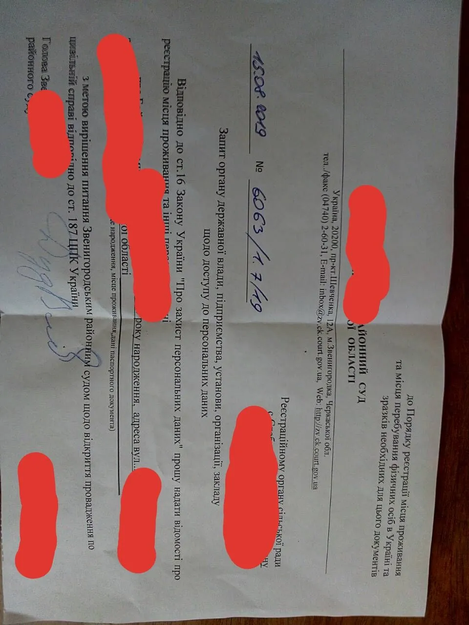 Добрый день.Мне на сельський совет по месту прописки пришло письмо с суда с требованием подтвердить действительно ли я там проживаю.Я его ещё не видела.Звонил голова сельсовета.У кого то было такое?В судовой владе ничего на меня нет.