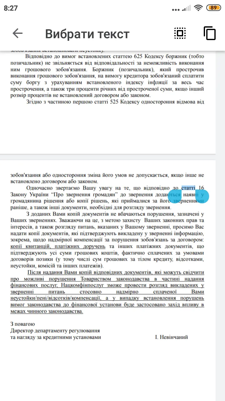 Доброго дня! Порадьте що робити далі. Писала в Нацком на монейвео щоб перевірили договір... , прийшла відповідь. Таке враження що вони не читали заяви. Я не платила і пролонгацій не робила. З 10 вже 30 нарахували