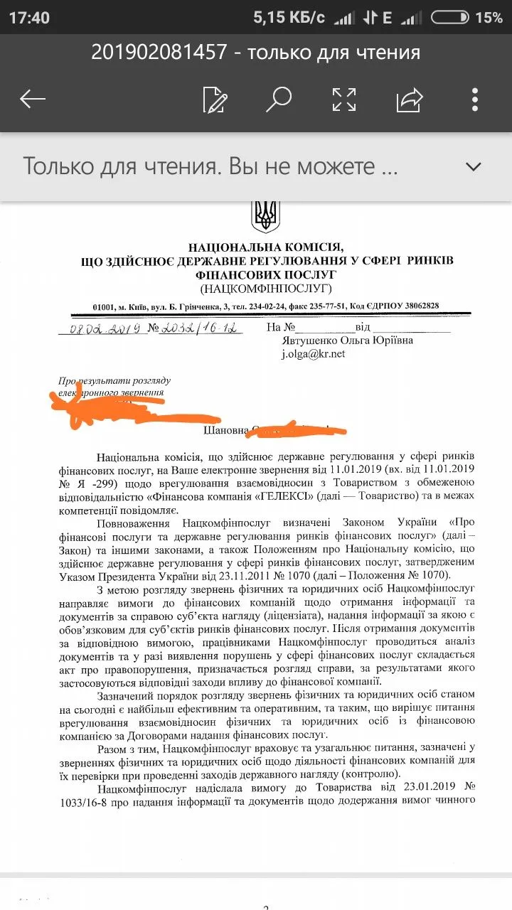 Запит Національної комісії, що здійснює державне регулювання у сфері ринків фінансових послуг, нами отримано. Очікуйте відповідь.