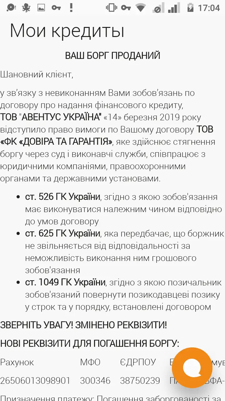 типичная смс о переуступке, которая никакой юридической действительности не содержит