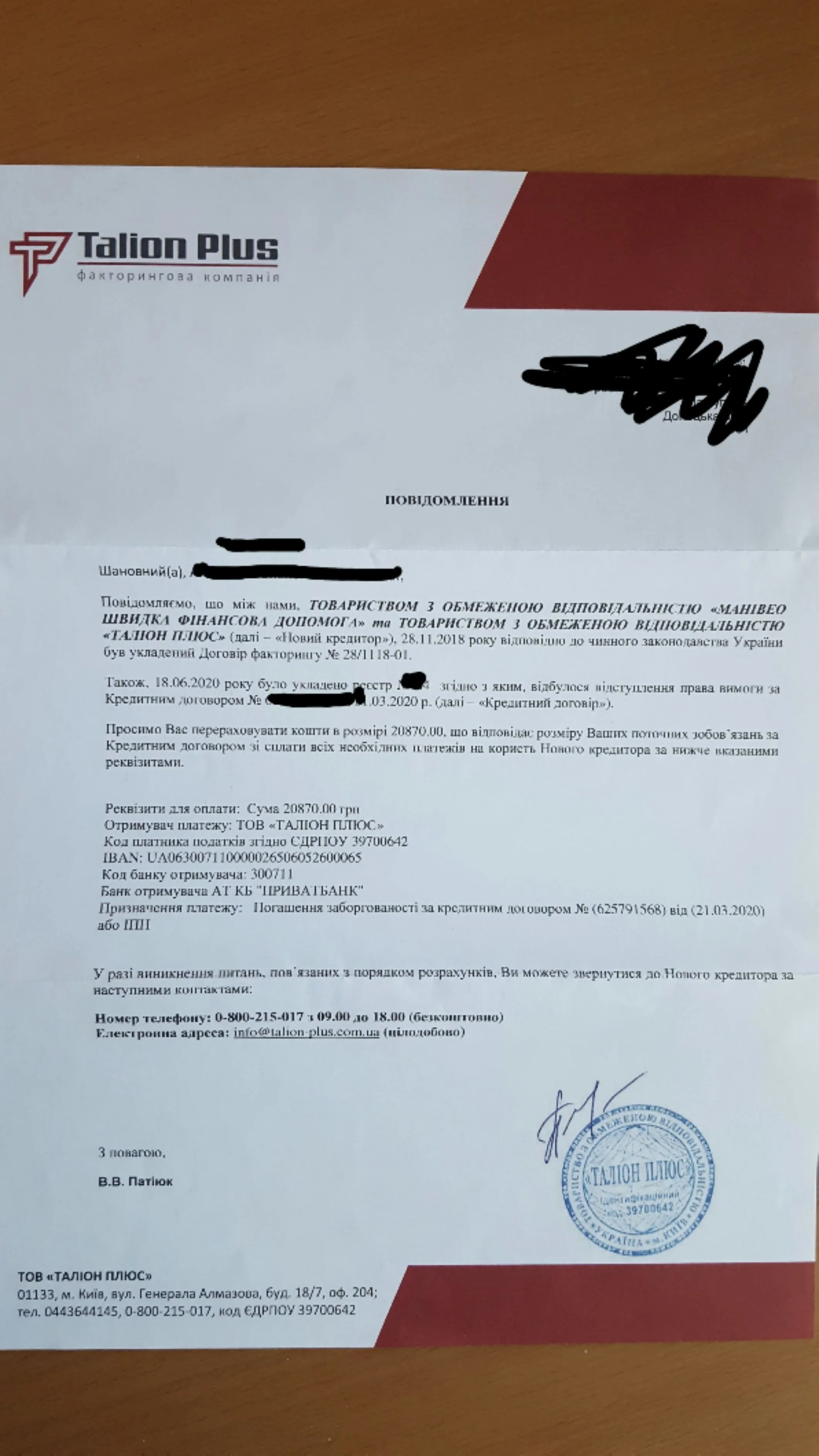 Сегодня пришло письмо от Талион+ (фото ниже). Как я понимаю спустя 1.5 месяца манивео меня продали