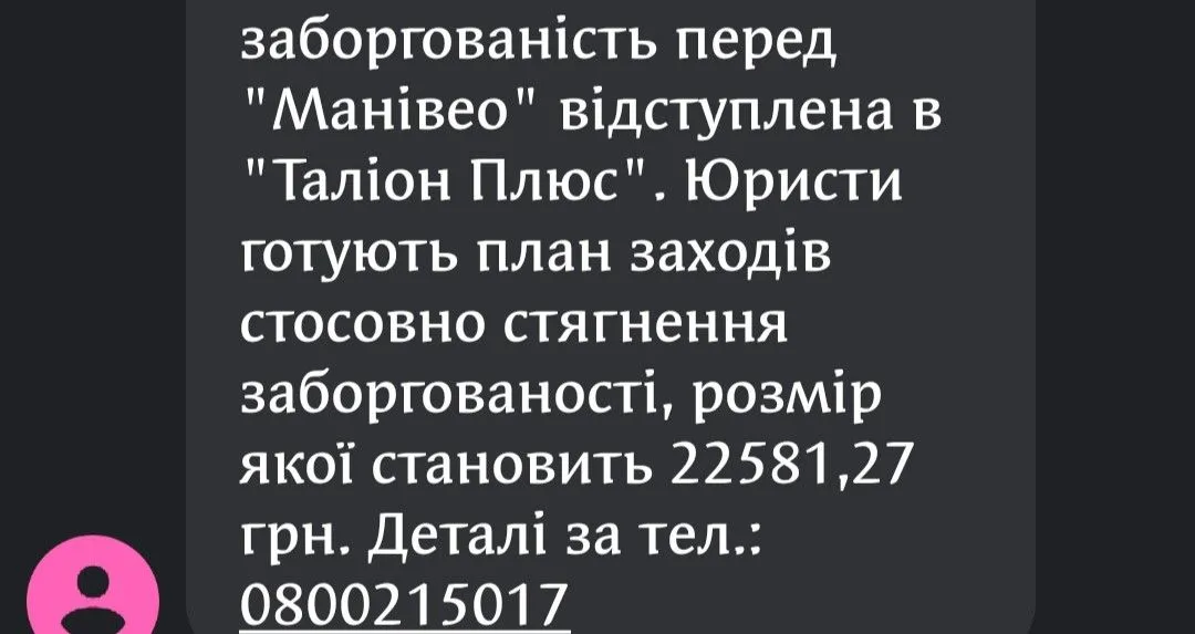 Точно такое же смс сегодня от них пришло.Но какие-то сообщения ничего не значат,я думаю так.Договор переуступки никто ж не прислал мне,так что никто никому ниче не должен.Потому что смс я такое же могу и сама написать